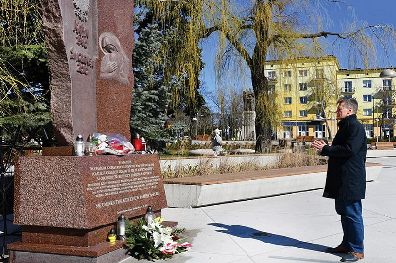 Dziś, burmistrz Waldemar Jakson złożył kwiaty pod pomnikiem ofiar Smoleńska i Katynia.