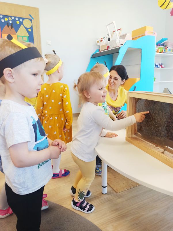 O Światowym Dniu Pszczół nie zapomniano również w Żłobku Miejskim nr 3, mieszczącym się przy ul. Kopera 1 (wchodzącym w skład Zespołu Żłobków Miejskich). Zajęcia przygotowały dzieci i opiekunki z grupy „Miasto”, a wzięły w nich udział również maluchy z innych grup.
