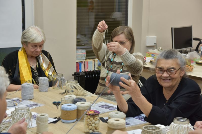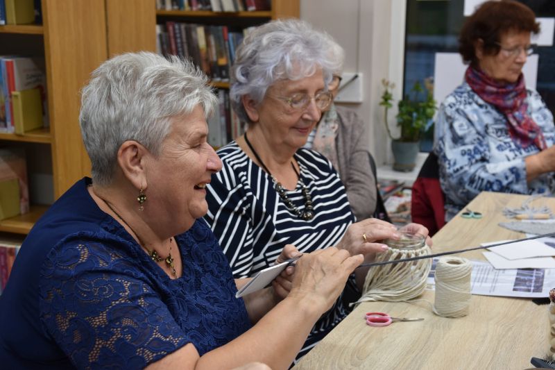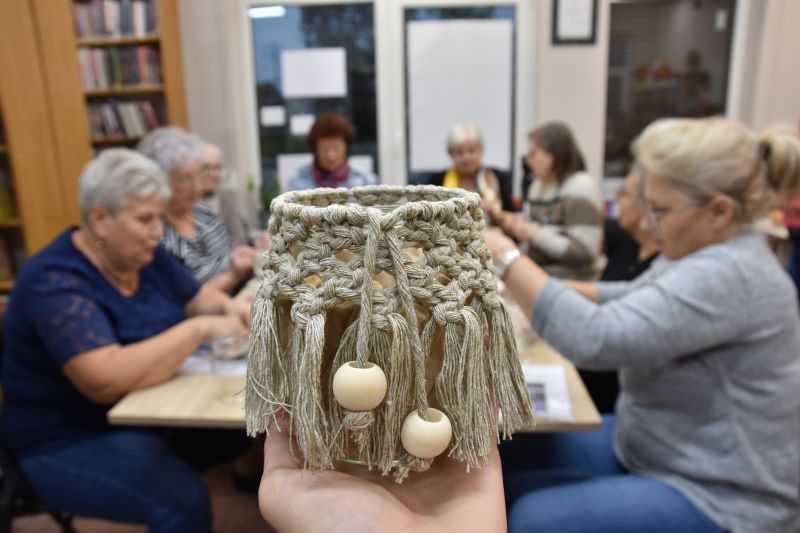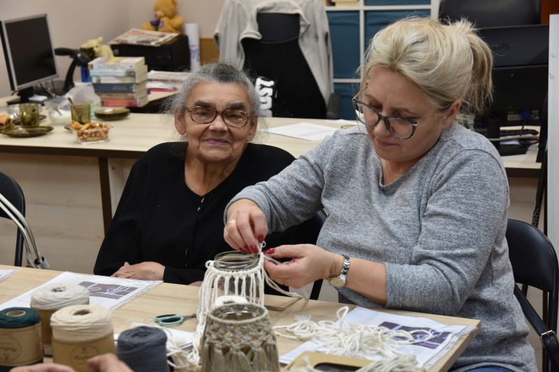 Naszym kolejnym punktem na kulturalnej mapie miasta była biblioteka przy ul. gen. Maczka. Jak się okazało, o literaturze można rozmawiać nawet podczas kreatywnych warsztatów. Placówkę wypełnili sympatycy sztuki. Nikt nie wyszedł z pustymi rękami! Uczestnicy spotkania przygotowali swoje własne prace wykonane techniką kolorowych sznurków – makramą.