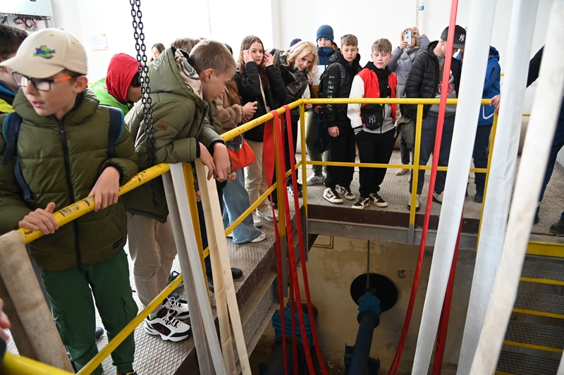 Młodzież zwiedziła centrum sterowania urządzeniami wykorzystywanymi do ujmowania, transportu i przygotowania wody do użycia. Okazuje się, że jest ona tak doskonałej jakości, że nadaje się do picia w stanie surowym. Mimo to poddawana jest stałym badaniom kontrolnym w laboratorium fizykochemicznym i mikrobiologicznym. W ciągu doby zużywamy jej około 6 tys. metrów sześciennych magazynowanych w dwóch zbiornikach o wymiarach 25x25x4 m.