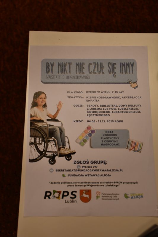 Warsztaty pod takim hasłem odbyły się w Filii nr 2 Miejsko-Powiatowej Biblioteki Publicznej, a wzięły w nich udział dzieci z klas 1c i 2b Szkoły Podstawowej nr 3. Do rozmowy o akceptacji, empatii i zrozumieniu dla różnorodności zachęcały uczniów Katarzyna Kasperek i Karolina Zakrzewska z Fundacji „Wstawaj Alicja”.