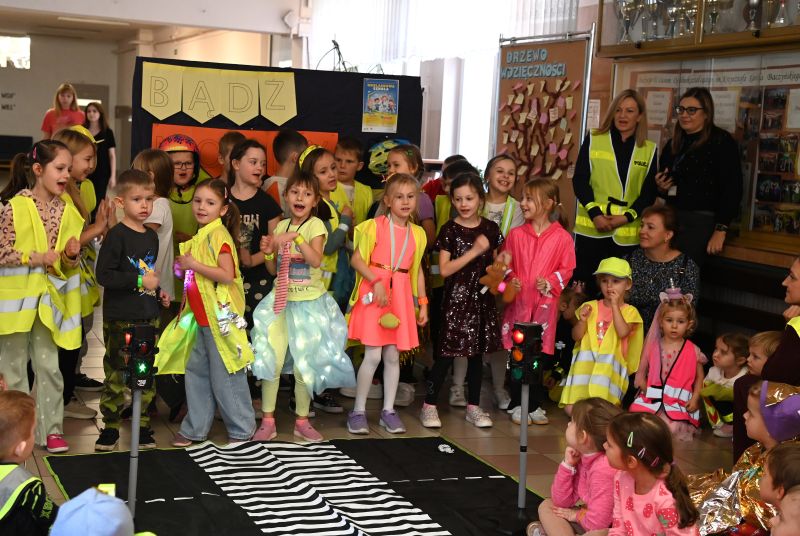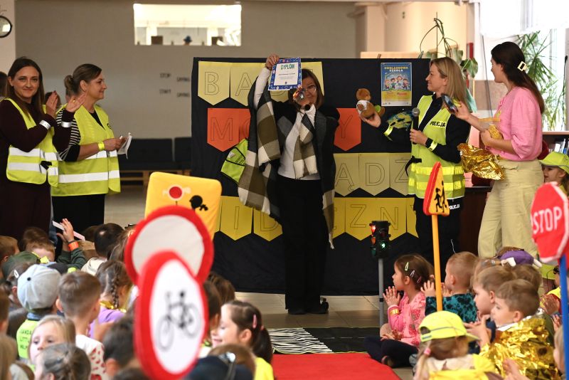 – Cieszę się, że mogę być dzisiaj z Wami. Jestem pod wrażeniem Waszej kreatywności. Włożyliście w ten pokaz dużo pracy i pomysłowości. Pokazuje on, że bycie widocznym może być modne, ciekawe i kolorowe. Pamiętajcie, odblaski to nie tylko ozdoba, ale przede wszystkim ochrona Waszego życia i zdrowia. Dziękuję za dbanie o bezpieczeństwo na drodze. Na ręce pani dyrektor składam maskotkę policyjnego misia oraz dyplom dla Was wszystkich, dla nauczycieli i całej szkoły, za udział w tym pięknym przedsięwzięciu – mówiła asp. I. Kleszczyńska.