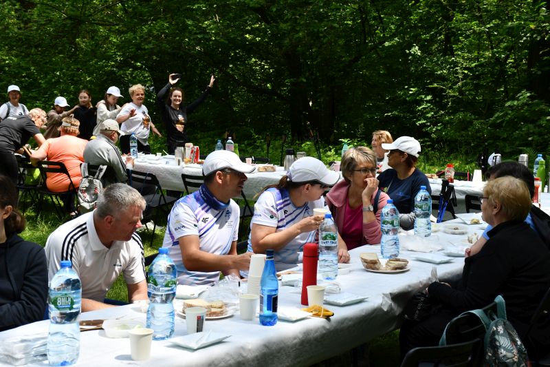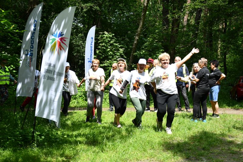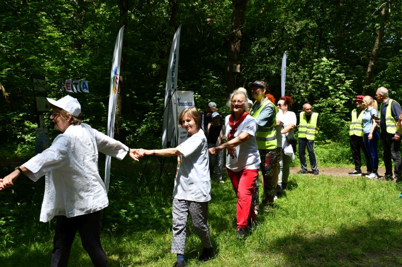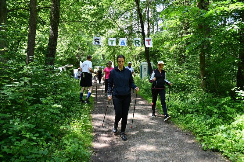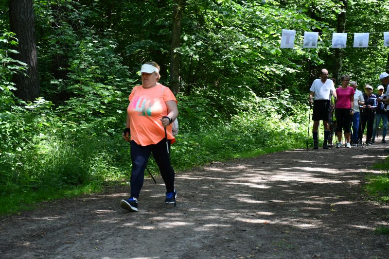 Dla miłośników nordic walking przygotowane były koszulki i czapki oraz dwie trasy: 2,5-kilometrowa familijna dla rodzin z dziećmi i osób mniej zaawansowanych, prowadzona przez Alinę (różowa) oraz 5-kilometrowa dla dorosłych, prowadzona przez Annę (żółta). Marsz wśród zieleni doskonale odprężył i zrelaksował, ale to nie jedyne zalety chodzenia z kijkami. Takie spacery poprawiają sprawność i kondycję, wzmacniają mięśnie, dobrze wpływają na metabolizm, regulują ciśnienie krwi, odciążają kręgosłup i stawy.