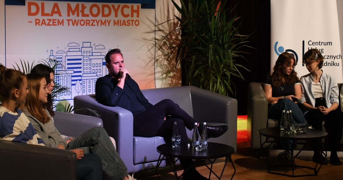– Dzisiejsze spotkanie jest zorganizowane przez Centrum Usług Społecznych, Urząd Miasta, na czele z burmistrzem, a także wolontariat i świdnicką młodzież. Witam przede wszystkim uczniów szkół, opiekunów, nauczycieli oraz dyrekcje placówek – rozpoczął Andrzej Mańka, dyrektor CUS. – Pierwsze spotkanie odbyło się w ubiegłym roku, kiedy to burmistrz zapoczątkował inicjatywę stworzenia „Strategii dla młodych”, która będzie wcielana w życie w następnych latach. Dzisiejsze spotkanie ma na celu umożliwienie wam porozmawiania z panem Marcinem Dmowskim, zadanie pytań i podzielenie się swoimi przemyśleniami.