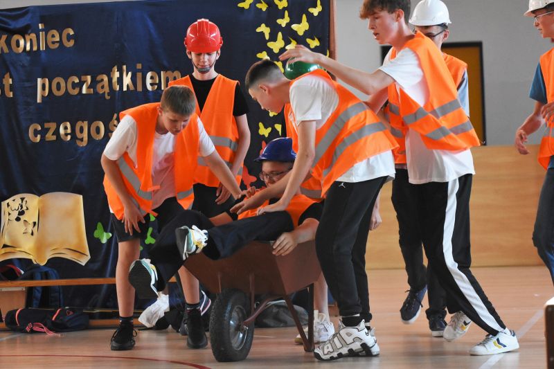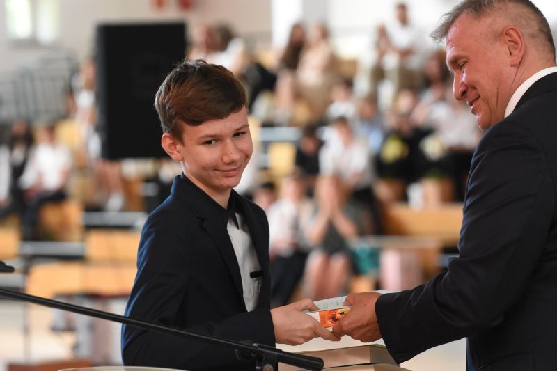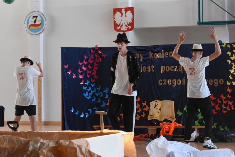 Uczniowie ósmych klas ze Szkoły Podstawowej nr 7 odebrali w czwartek świadectwa ukończenia tego etapu edukacji. Uroczyste spotkanie odbyło się w hali sportowej szkoły, gdzie młodzież otrzymała dokumenty z rąk dyrektora Piotra Bogusza.