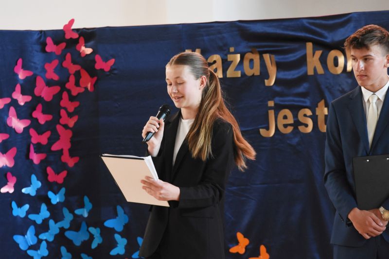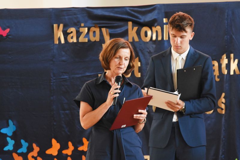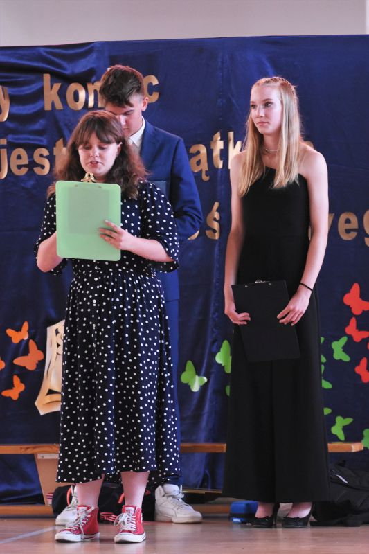 Słowa podziękowań do uczniów skierowała też Ewa Łagożna, wicedyrektor placówki: – Przez osiem lat pobytu w szkole, dzień po dniu, rok po roku, pracowaliście nad własnym rozwojem. Z pomocą rodziców i nauczycieli przygotowywaliście się, i nadal przygotowujecie, do dorosłego życia. Zdobywaliście wiedzę, kształtowaliście umiejętności, rozwijaliście swoje pasje i zainteresowania. Szkoła podstawowa to pierwszy etap edukacji każdego człowieka. Pierwszy, ale bardzo ważny. Arystoteles powiedział, że najistotniejszym i najtrwalszym podarunkiem, jaki można dać dziecku, jest wykształcenie. To dar, którego nikt i nic nie jest w stanie nas pozbawić – podsumowała E. Łagożna.