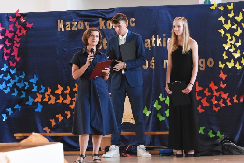 Absolwenci podziękowali dyrekcji, nauczycielom oraz swoim wychowawcom: Agnieszce Wilczopolskiej, Edycie Baranowskiej, Annie Chyćko, Karolinie Suszek i Arturowi Szeflerowi.