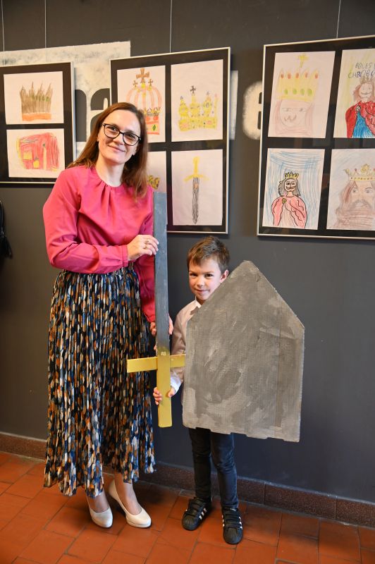 Później był czas na oglądanie prac. Na obrazkach znalazły się najważniejsze postaci, wydarzenia i symbole związane z koronacją Bolesława Chrobrego. Dzieła młodych artystów zachwyciły pomysłowością, kolorami, dbałością o szczegóły. Dumy z pociech nie kryli rodzice przedszkolaków obecni na wernisażu.