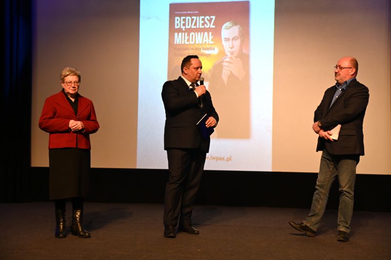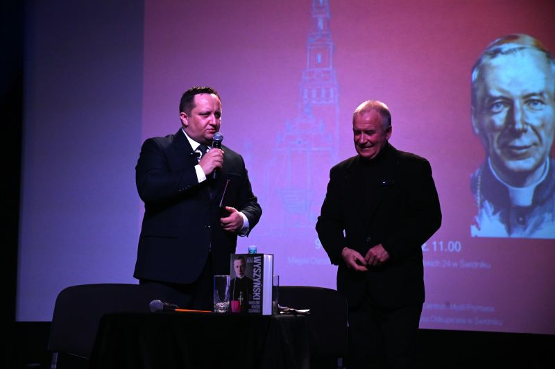 – Muszę powiedzieć, że głównym organizatorem jest pani Irena Okoń, bo wszystkie inicjatywy związane z Prymasem, w tym starania o przyjęcie Go za patrona Świdnika, to jej zasługa. Cieszę się, że po raz kolejny spotykamy się w tej sali – dziękuję dyrektor Miejskiego Ośrodka Kultury za gościnność, dziś ze szczególnych okazji, bo w roku 70. rocznicy Jasnogórskich Ślubów Narodu oraz 80. rocznicy ingresu biskupa Stefana Wyszyńskiego, aby wspólnie spojrzeć na postać Stefana Wyszyńskiego. Kierujemy to spotkanie przede wszystkim do ludzi młodych. Prymas Wyszyński nie tylko mówił o młodych, ale rozmawiał z młodymi, ufał im, chociaż stawił im wysokie wymagania – podkreślał Marcin Sułek, członek zarządu Katolickiego Stowarzyszenia “Civitas Christiana” – Centrum Myśli Prymasa Wyszyńskiego.