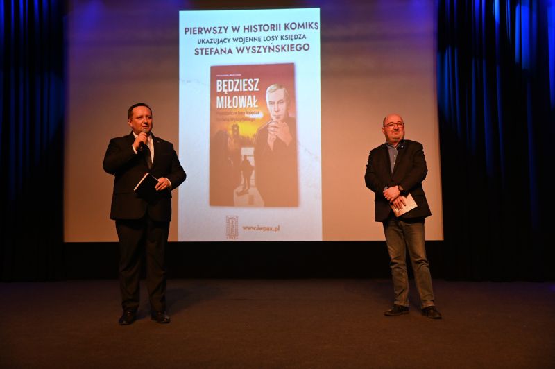 Po projekcji głos zabrał Bogdan Miszczak, producent filmu, który opowiedział o kulisach jego powstania: – To rok pracy przed powstaniem filmu, później tydzień pobytu w Komańczy, razem z Markiem Kalitą, Olą Popławską (grała Marię Okońską, założycielkę Instytutu Prymasowskiego – przyp. red.) czy nieżyjącym już Jerzym Trelą (grał ojca S. Wyszyńskiego – przyp. red.). Film miał być na początku kolorowy, ale doszliśmy do wniosku, że jeżeli młode pokolenie zobaczy księdza, który przechadza się po pięknych górkach Komańczy i Bieszczadów, to nie uwierzy, że lata pięćdziesiąte były latami ciężkimi. Nie szarymi, a czarnymi. I że prymas nie był tam jak w sanatorium tylko był odizolowany. Był tam dokładnie rok. Pokazaliśmy więc też rok 1956, ponieważ był bardzo ważny dla Polski. W marcu umiera Bierut, w kwietniu jest amnestia, w maju słynny Wyścig Pokoju, który wygrał Królak, w czerwcu byłą czerwiec poznański. Uczycie się, że bunty czy rewolucje, czy powstania, były dla uwolnienia się, czy dla zdobycia wolności. Czerwiec `56 w Poznaniu był dlatego, że ludzie upomnieli się o to, że byli głodni. Wyszli na ulice. Władza wypuściła na robotników czołgi, strzelano ostrą amunicją. To były straszne czasy. Widzieliście też w filmie młodego Karola Wojtyłę, który chodził po tamtych ścieżkach. To wprawdzie film o prymasie Wyszyńskim, ale chcieliśmy pokazać, że w Komańczy toczyło się życie. Zastanawiałem się, jaką rodzinę mógłbym tam wpleść i wymyśliłem sobie leśników. Ojciec, akowiec, pewnie z Krzyżem Walecznych, zmuszony nakazem pracy do zamieszkania z żoną i dziećmi na końcu Polski. Pojechałem z tą historią do nadleśnictwa w Komańczy, gdzie pracował pan Edward, regionalista. Opowiedziałem mu o tym, pytam, co on na to. Wyciągnął z kasy pancernej akta i mówi: „W `54 roku z nakazem pracy trafił tu Jan ze swoją żoną i dwójką dzieci. Były akowiec, siedział 3 lata na Montelupich. Zawsze chodził w oficerkach do kościoła ze swoim Krzyżem Walecznych, który otrzymał”. I tak okazało się, że to, co sobie wymyśliłem, było prawdą. Poprzez tę rodzinę pokazaliśmy, że w Komańczy też odbywało się normalne życie. Zdjęcia z nią nagrywaliśmy w skansenie w Sanoku. Sekwencje odchodzenia prymasa kręciliśmy w Instytucie Prymasowskim. Dzisiaj młode pokolenie dziwi się, że prymas nie mógł rozmawiać z papieżem Janem Pawłem II, bo kabel od telefonu był za krótki. W tamtych czasach nie było telefonów komórkowych ani Internetu. Ja też dopiero po premierze filmu zrozumiałem, co by się stało, gdyby wówczas, w 1981 roku, zmarł prymas i zmarł Jan Paweł II. Jak wyglądałaby dzisiaj Polska i cały świat.