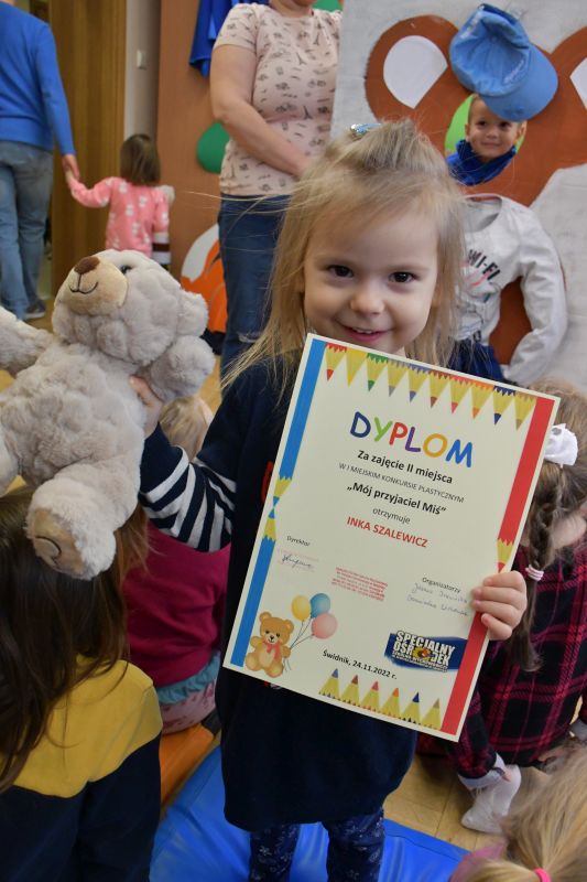 Rozstrzygnięto także I Miejski Konkurs Plastyczny „Mój przyjaciel Miś”, którego organizatorkami były Joanna Drzewińska i Dominika Witkowska. Jury w składzie: Dariusz Szałaj, dyrektor Poradni Psychologiczno-Pedagogicznej, Beata Bernat, wicedyrektor SOSW, Małgorzata Czerwińska, nauczyciel SOSW przyznało następujące nagrody: