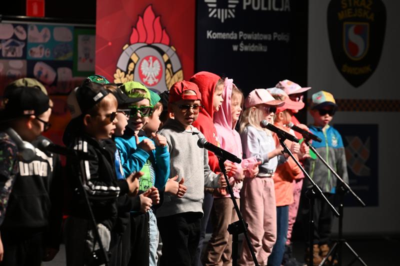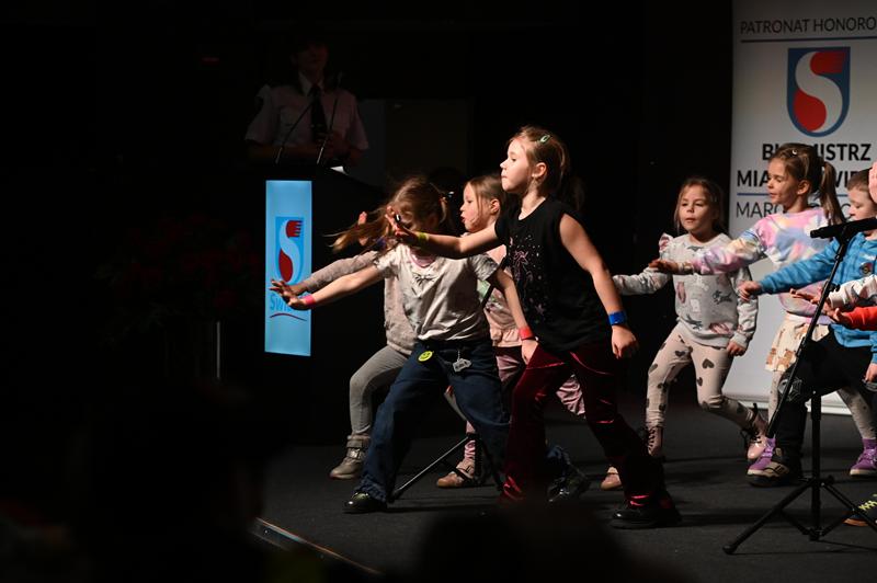 Najmłodsi uczestnicy zachwycili publiczność przygotowanym programem artystycznym. Na scenie zaprezentowali wiersze, tańce, scenki teatralne i piosenki, wszystkie nawiązujące do tematu bezpieczeństwa i właściwych zachowań w miejskiej przestrzeni.