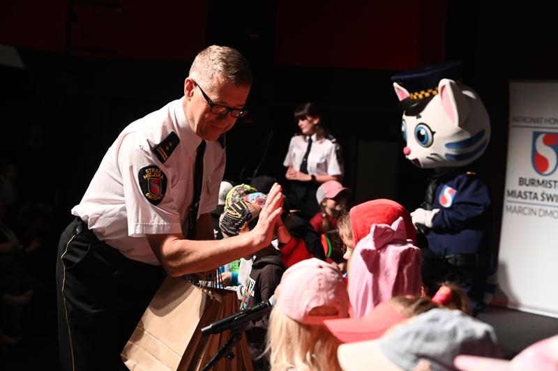 Za wysiłki włożone w przygotowania do występów, dzieci otrzymały upominki. Nagrody wręczyli: burmistrz Marcin Dmowski; mł. insp. Jacek Deptuś, komendant powiatowy KPP w Świdniku; bryg. mgr inż. Emilia Skoczylas, komendant powiatowy PSP w Świdniku; st. asp. Elwira Domaradzka, oficer prasowy KPP w Świdniku; Bożena Zapalska, naczelnik Wydziału Zarządzania Oświatą UM; Michał Kamela, kierownik Biura Bezpieczeństwa i Archiwum Zakładowego UM oraz st. kpt. Dawid Lasota z KP PSP w Świdniku.