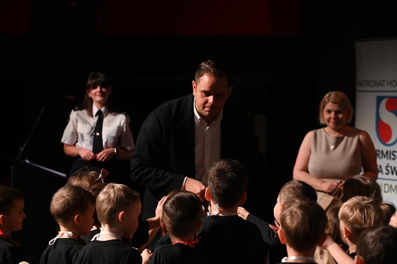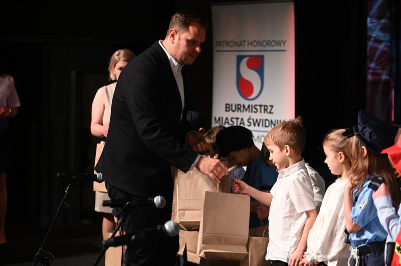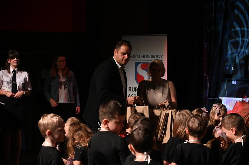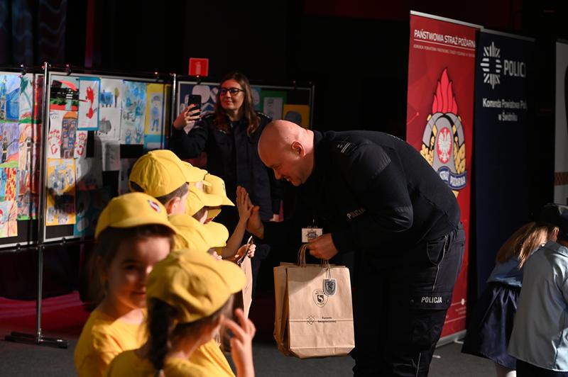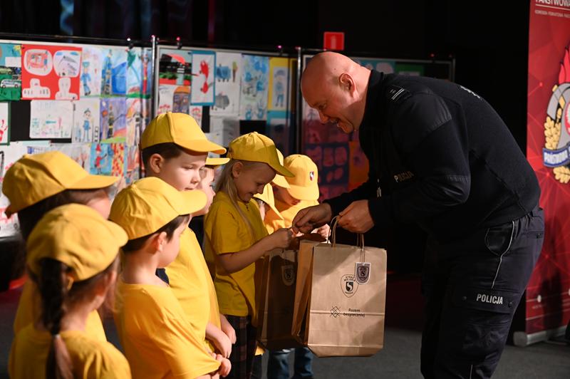 Za wysiłki włożone w przygotowania do występów, dzieci otrzymały upominki. Nagrody wręczyli: burmistrz Marcin Dmowski; mł. insp. Jacek Deptuś, komendant powiatowy KPP w Świdniku; bryg. mgr inż. Emilia Skoczylas, komendant powiatowy PSP w Świdniku; st. asp. Elwira Domaradzka, oficer prasowy KPP w Świdniku; Bożena Zapalska, naczelnik Wydziału Zarządzania Oświatą UM; Michał Kamela, kierownik Biura Bezpieczeństwa i Archiwum Zakładowego UM oraz st. kpt. Dawid Lasota z KP PSP w Świdniku.