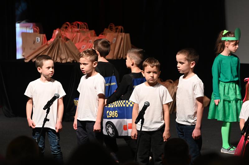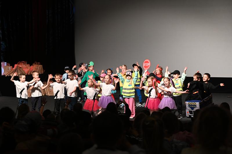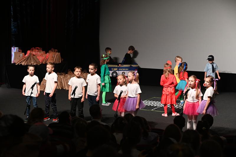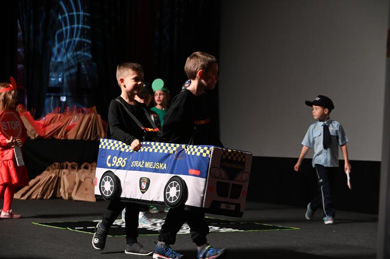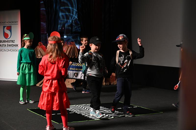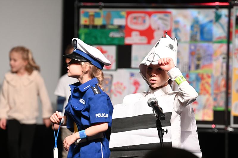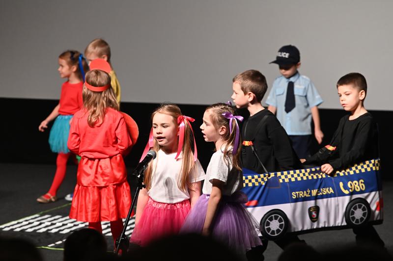 Najmłodsi uczestnicy zachwycili publiczność przygotowanym programem artystycznym. Na scenie zaprezentowali wiersze, tańce, scenki teatralne i piosenki, wszystkie nawiązujące do tematu bezpieczeństwa i właściwych zachowań w miejskiej przestrzeni.