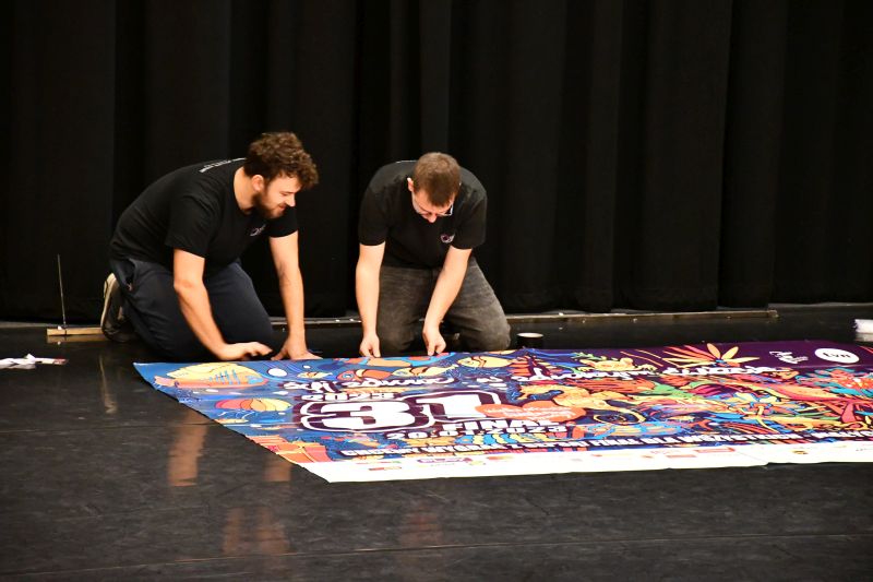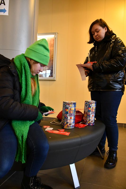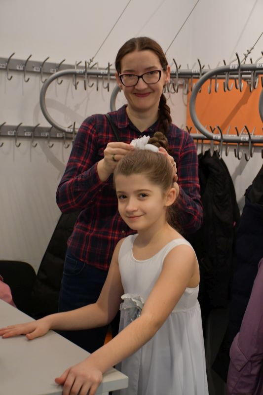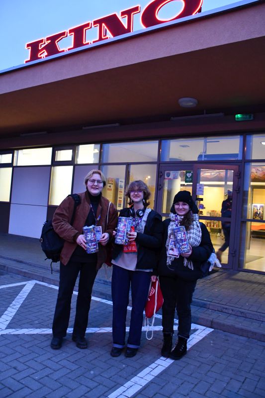 W holu kina „Lot” działa sklepik, w którym można zakupić, na przykład, maskotki, gry, obrazy, książki. Trwają próby przed pierwszymi występami na scenie.