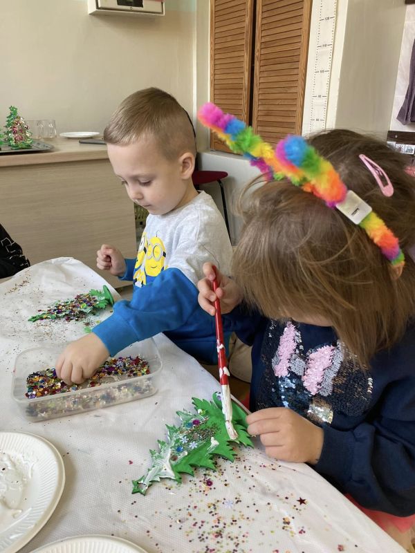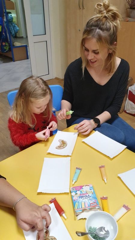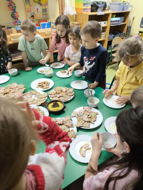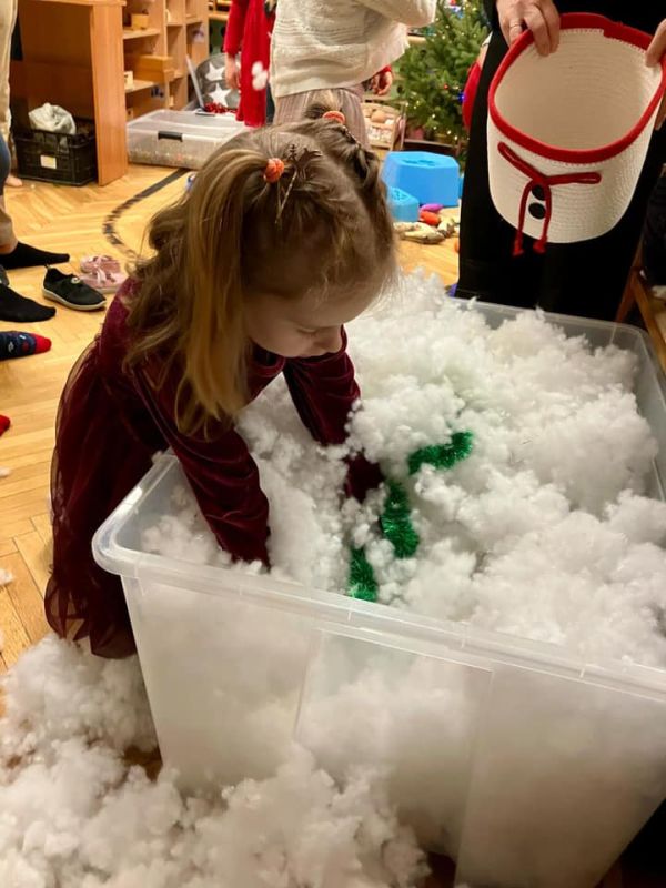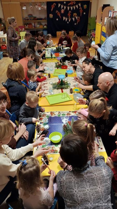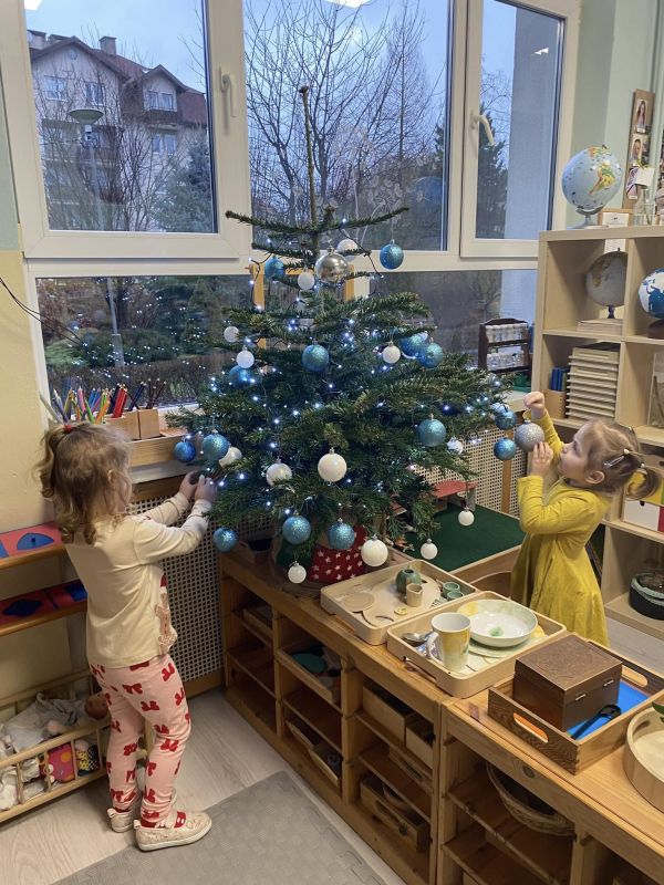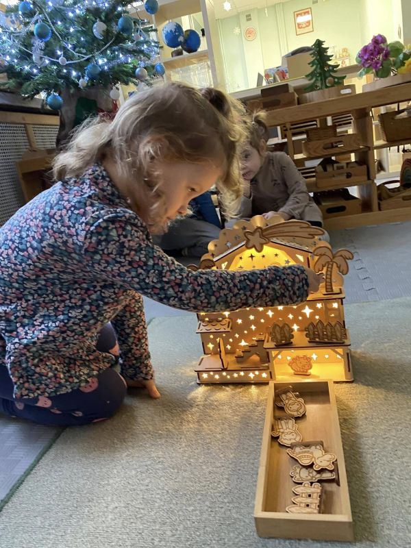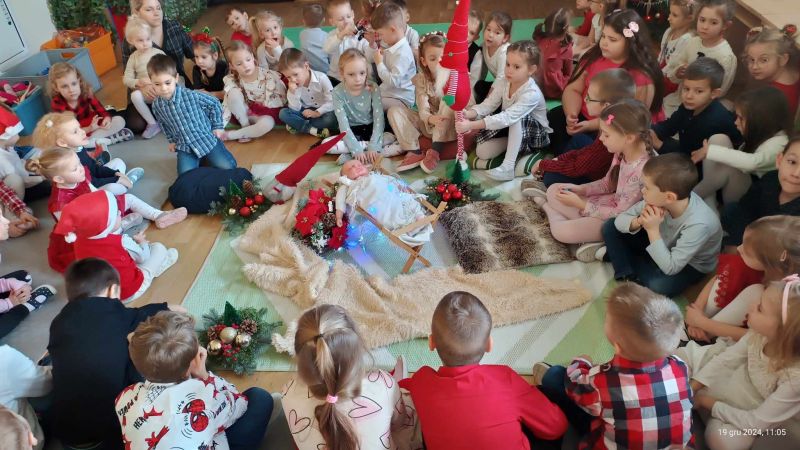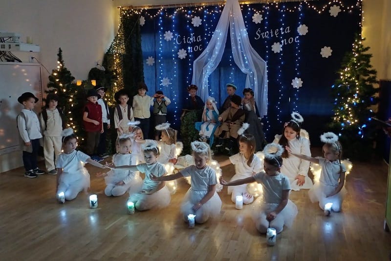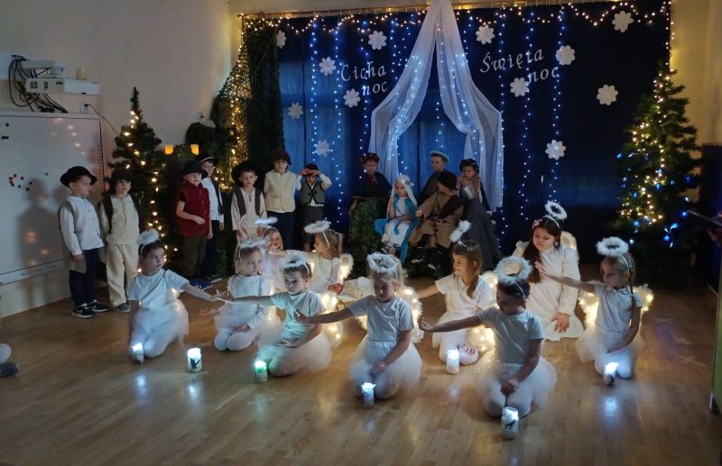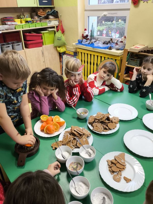W placówkach pracuje łącznie 11 oddziałów. W grupie z nauczycielkami lub na warsztatach z rodzicami dzieci piekły, zdobiły i … kosztowały pierniczki. Szlifowano kolędy i teksty jasełek, aby w ten wyjątkowy wieczór zabrzmiały pięknie. Przedstawienia jasełkowe zgromadziły rodziców i całą społeczność placówek na wspólnym kolędowaniu. Na spotkaniach dzieci wraz ze swoimi bliskimi wykonywały sznurkowe choinki, dzwoneczki z pudełek, bombki, choineczki z szyszek, stroiki, świeczniki czy inne świąteczne ozdoby. Nie zabrakło życzeń i przełamania się opłatkiem.
