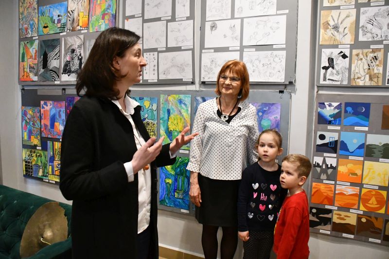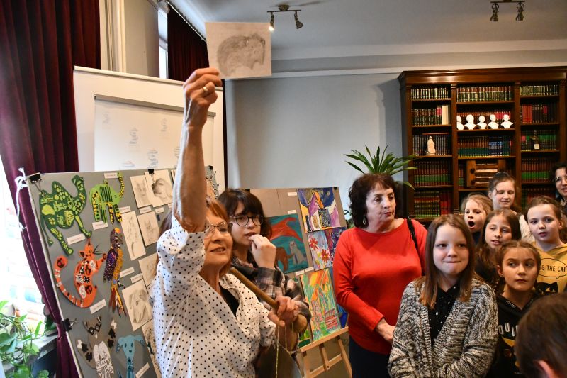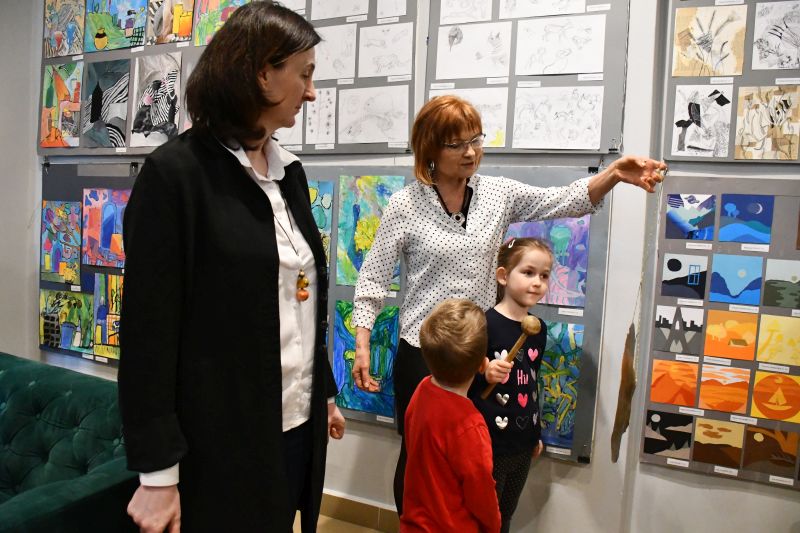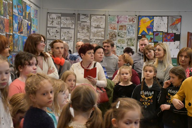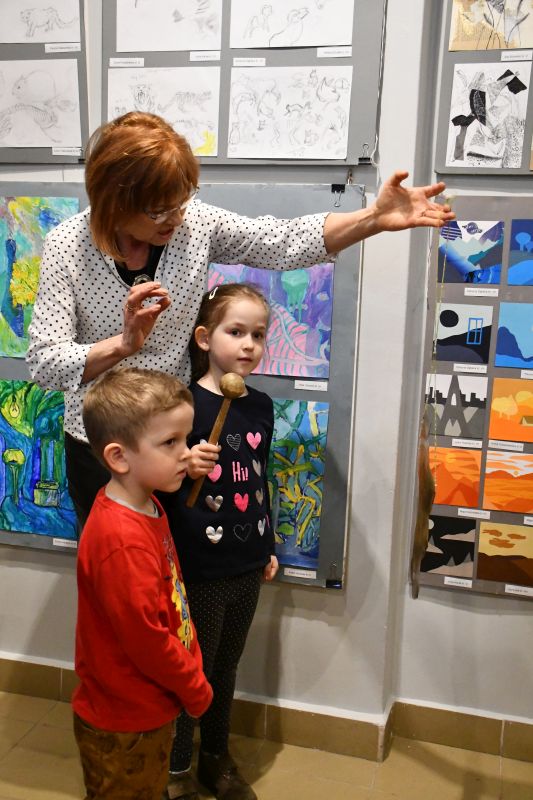 – Wystawa jest głównie dla państwa – zwróciła się do gości Barbara Kasprzak. – Wiem, że znacie prace swoich dzieci, czasami oglądacie je po zajęciach. Leżą jednak na podłodze, na stolikach, dobrze ich nie widać. Dzisiaj możecie podziwiać je w całej krasie, zobaczyć, ile potrafią wasze pociechy, jakie są zdolne i jakie mają niezwykłe potencjały. Nie wszystkie dzieła zmieściły się na ekspozycji, ale starałam się, by zmieściły się chociaż po trzy prace każdego dziecka. Państwa trud w przyprowadzanie ich na zajęcia, owocuje. Gratuluję i dziękuję. Słowa uznania należą się też oczywiście młodym artystom, którzy tak wiele potrafią już zrobić. Dziękuję również całemu zespołowi biblioteki, że gości nas od wielu, wielu lat i za ogromną życzliwość, z jaką się tu spotykamy.