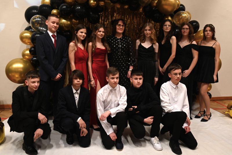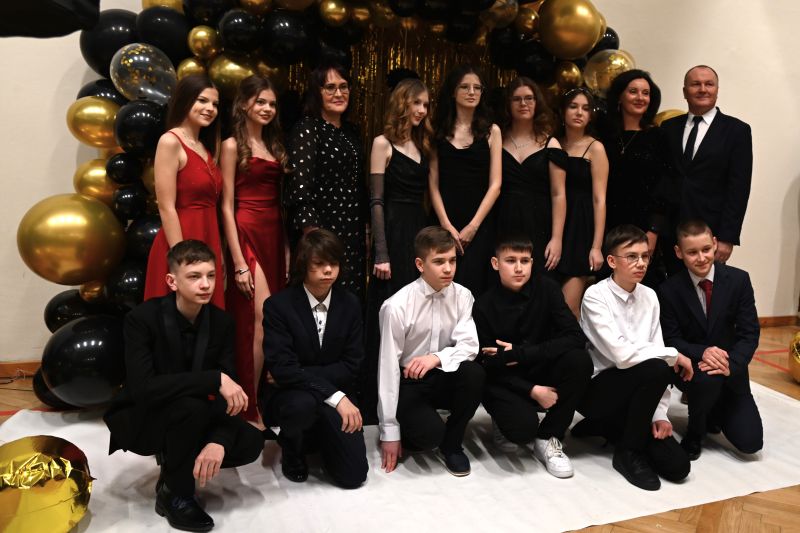Później był czas na pamiątkowe zdjęcia, poczęstunek oraz oczywiście szaleństwa na parkiecie. Impreza była tak wspaniała, że gdy nadszedł jej koniec, nikt nie miał ochoty wracać do domu. Wszyscy opuszczali szkołę zmęczeni, ale zadowoleni z zabawy. Na szczęście na odpoczynek po balu ósmoklasiści mają aż dwa feryjne tygodnie.