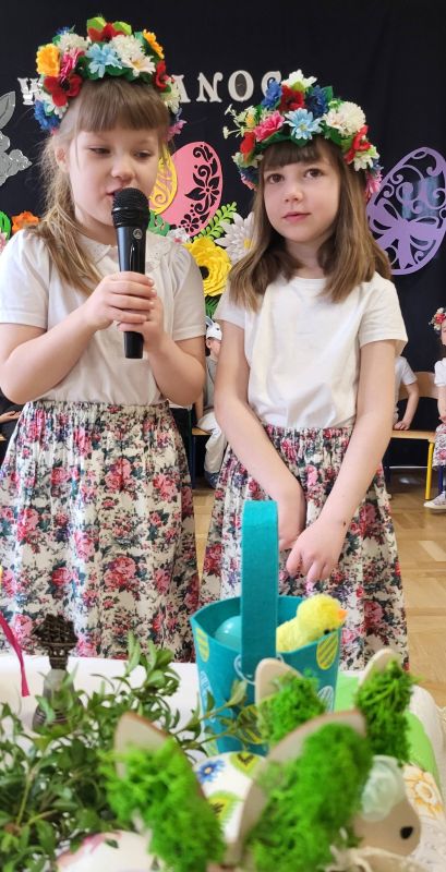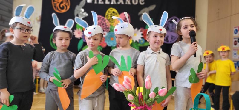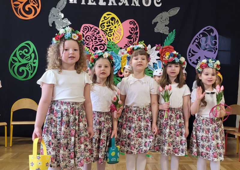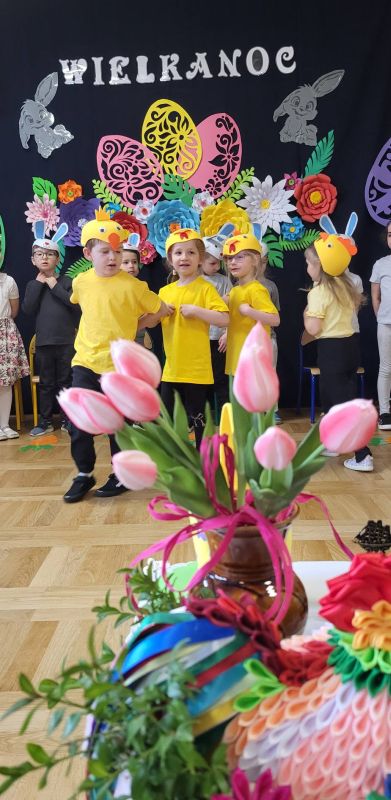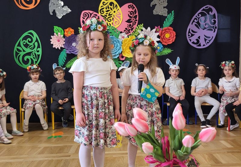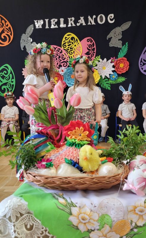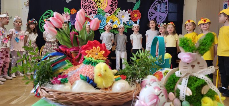 Mali artyści z zaangażowaniem zaprezentowali program, w którym przypomnieli, jak ważne są wielkanocne zwyczaje. Wspólnie recytowały słowa: „Idą Święta, Wielkanocne idą Święta. O tych Świętach każde dziecko pamięta. Przygotuje barwny, świąteczny koszyczek i do niego dołączy dla wszystkich moc życzeń”.