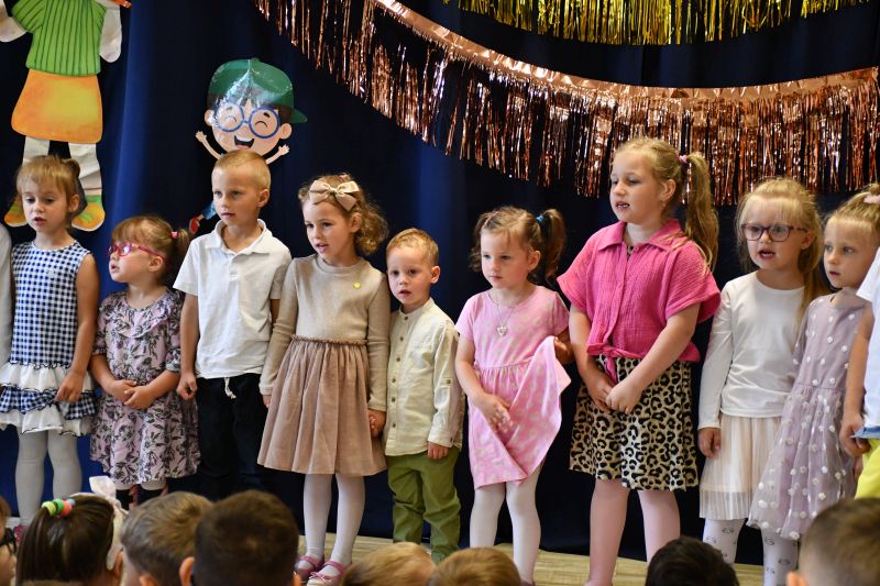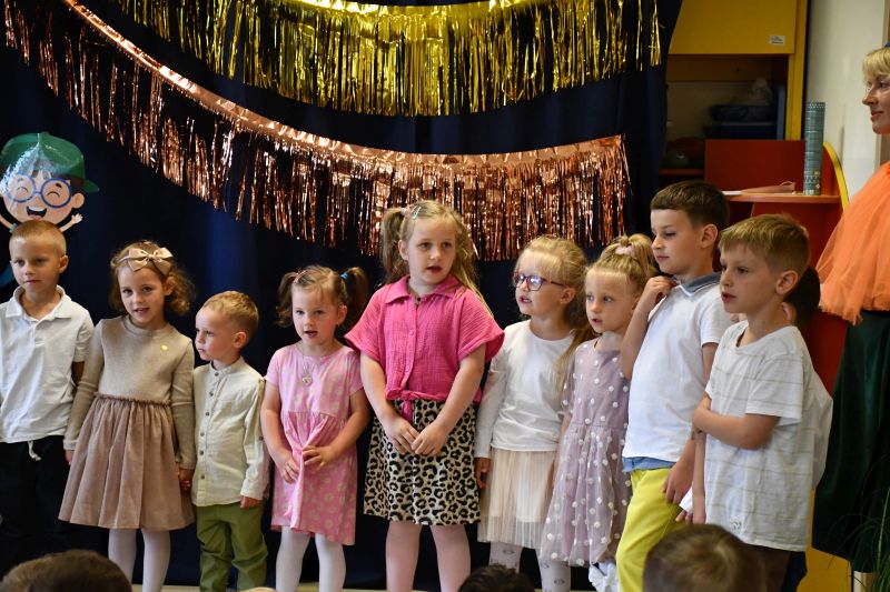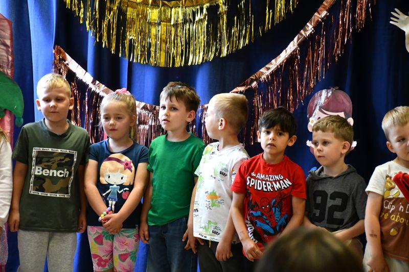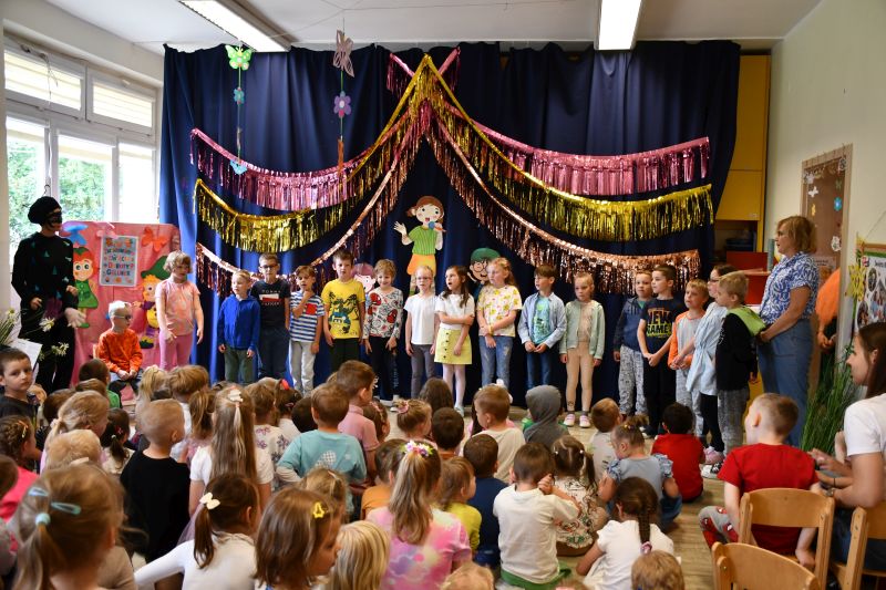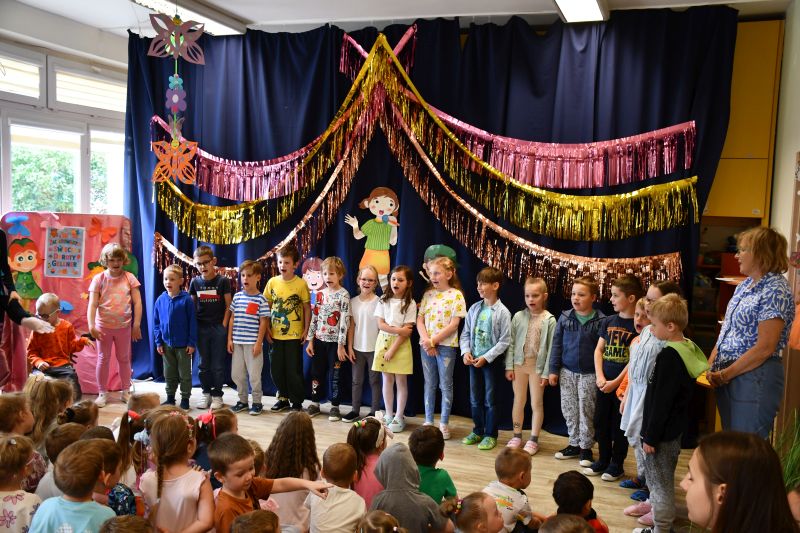 W środę jedna z przedszkolnych sal zmieniła się w wielką scenę. Zaprezentowały się na niej wszystkie grupy, śpiewająco wykonując utwory poetki, na przykład: „Krasnale”, „A ja patrzę, a ja słucham”, „Podajmy sobie ręce”, „Zuzia, lalka nieduża”, „Pobudka z ogródka”, „Mam fryzurę na cebulę”. Młodzi artyści nagrodzeni zostali słodkimi niespodziankami.