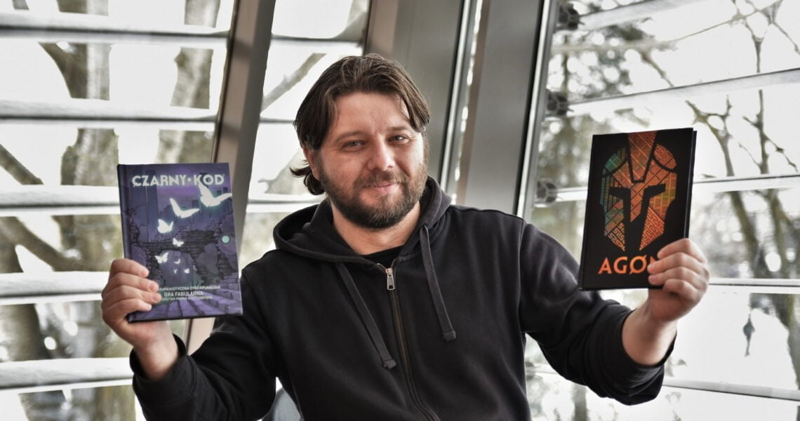 – Kolejną perełką, którą wy­dałem jest „Czarny Kod”. To postapokaliptyczna, cyberpun­kowa wizja świata. Zanim wy­brałem właśnie ją, przejrzałem wiele innych tytułów. Bardzo spodobała mi się ta gra, dlatego skontaktowałem się z jej auto­rem, Markiem Whittingtonem. Okazał się bardzo fajnym czło­wiekiem, który gra w RPG dłu­żej ode mnie. Udało nam się dogadać odnośnie licencji i w ten sposób powstała polska edycja. Trzecim tytułem jest „AGON”. Wybierając go, kiero­wałem się mało eksploatowa­nym tematem. Mam nadzieję, że w młodszych i starszych od­biorcach zaszczepi zaintere­sowanie starożytną Grecją i mitologią. To fajnie przemyśla­ny projekt. Nasi herosi wraca­ją z wielkiej wojny i gubią się na nieznanym archipelagu dziw­nych wysp. Na każdej z nich dochodzi do konfliktów, które jako herosi musimy rozwiązać. Naszym poczynaniom przy­glądają się bogowie. Jeśli uda nam się ich do siebie przeko­nać, wrócimy do domu i sami staniemy się legendą. Obec­nie pracuję też nad „Mausrit­terem”, gdzie gra się myszą. To tytuł, który można dostosować do potrzeb dzieci, ale też i star­szych odbiorców. Porusza bar­dzo ważne oraz trudne tematy. Do druku przygotowuję też „Patrol”, który koncentruje się na wojnie w Wietnamie i jej tra­gizmie. Ukazuje, jak wojna na nas wpływa i jak nas wyniszcza. Gracz może wcielić się w różne strony konfliktu. Kolejnym ty­tułem jest „Sigmata” ukazują­ca świat, w którym w Stanach Zjednoczonych do władzy do­szli naziści. Gracze wcielają się w członków ruchu oporu. Sama gra ma cyberpunkowy sznyt i utrzymana jest w estetyce lat. 80 ubiegłego wieku.