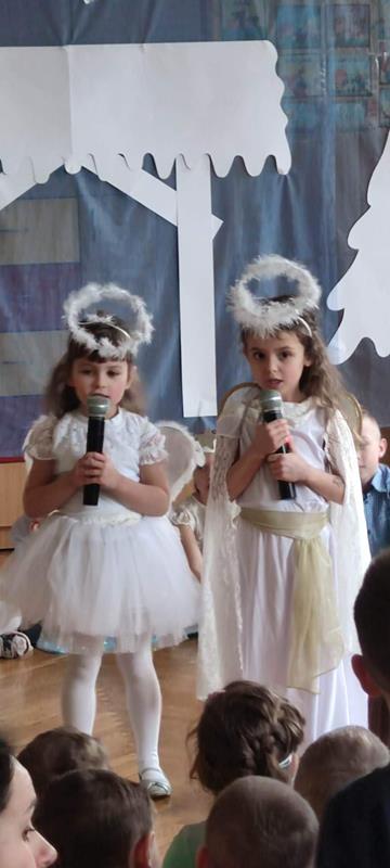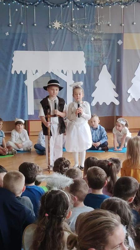 W krótkiej inscenizacji dzieci z grupy pięciolatków przybliżyły swoim kolegom i koleżankom historię narodzenia Jezusa oraz bożonarodzeniowych tradycji. Potem przyszedł czas na występy wokalne. W przeglądzie wzięli udział reprezentanci wszystkich przedszkolnych grup, którzy pod okiem nauczycielem przygotowali kolędy i pastorałki.