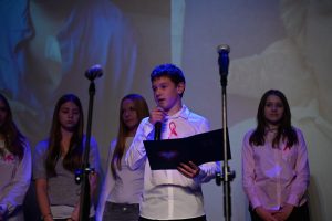 „Pani Karolino, jesteśmy z Tobą!” – te słowa, wypowiedziane przez uczniów Szkoły Podstawowej nr 5, były główną myślą dzisiejszego wydarzenia charytatywnego. Podczas „Koncertu serc” społeczność szkoły wsparła swoją nauczycielkę Karolinę Bzowską, która choruje na raka piersi. Dochód z wydarzenia w całości zostanie przeznaczony na jej leczenie.