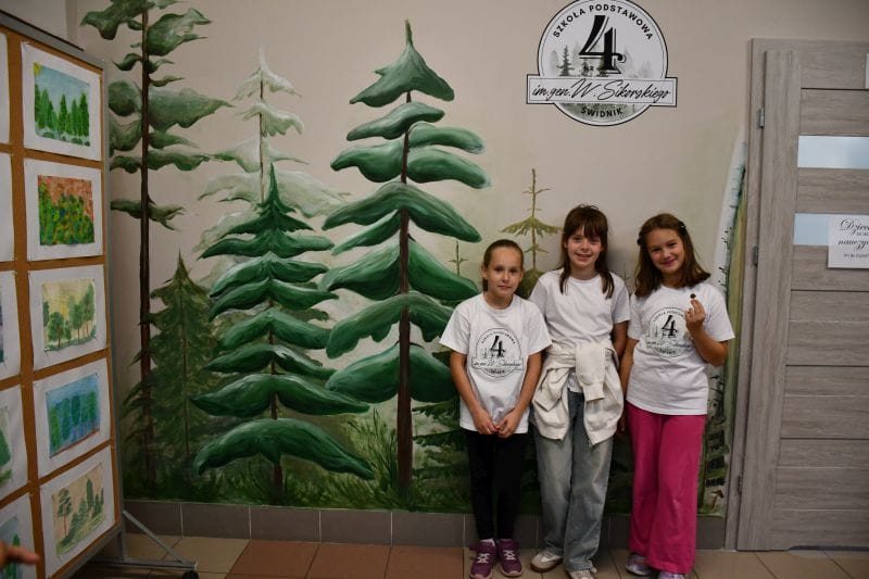 – Zdecydowałam się na taką formę sztuki, by podkreślić tożsamość Szkoły Podstawowej nr 4 – znanej w Świdniku jako „szkoła przy lesie”. Projekt miał na celu nie tylko wzbogacenie przestrzeni, ale także zaangażowanie naszej społeczności w działania artystyczne i ekologiczne. Coraz częściej murale pełnią funkcję edukacyjną, promując wartości związane w naturą i ochroną środowiska. Inspiracją do stworzenia „Lasu” było również logo „Czwórki” autorstwa Beaty Zarosińskiej, nauczycielki matematyki. Stało się punktem wyjścia do koncepcji pomalowania ściany, która w trakcie realizacji ewoluowała dzięki twórczym pomysłom artystów – wyjaśnia Marta Binięda. Dodaje: – Dziękuję mojemu nauczycielowi plastyki, panu Jerzemu Tomaszkowi, za to, że wsparł mnie doświadczeniem, zwłaszcza w technice akwarelowej. Dziękuję nauczycielom oraz rodzicom zaangażowanym w realizację dzieła: Agnieszce Makuch, Urszulki Jabłońskiej, Teresie Szymańskiej-Paruszkiewicz i Agnieszce Smarzak, a także uczniom: Wiktorii Wójtowicz, Alicji Bienieckiej, Natalii Kowalczyk, Wiktorii Tkaczyk i Martynie Biniędzie.