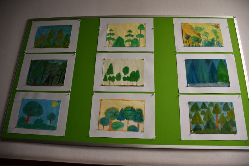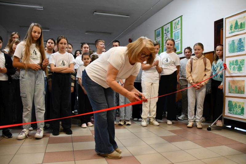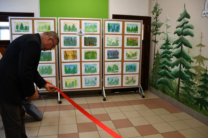 – Na korytarzu znajduje się również wystawa prac dzieci, które zainspirowane nową przestrzenią, wykonały na zajęciach koła plastycznego i lekcjach plastyki ponad 100 obrazków techniką akwareli – informowała M. Binięda, zachęcając do ich oglądania i podziwiania.