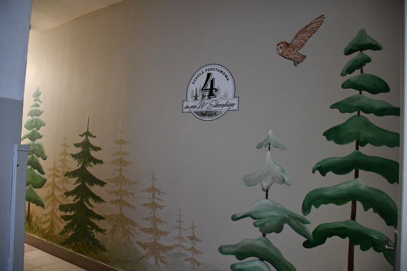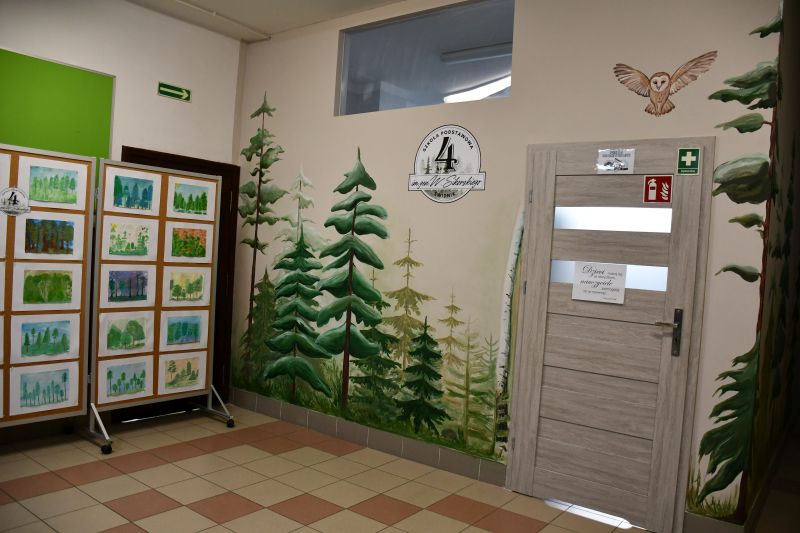 „Czwórka” potocznie nazywana „szkołą przy lesie” zyskała malarski akcent, który nie tylko oddaje istotę tego przydomku, ale też nawiązuje do ekologicznych i artystycznych działań od lat podejmowanych w placówce. Na jednej ze ścian korytarza na I piętrze powstał mural „Las”.