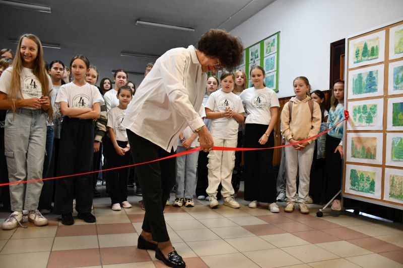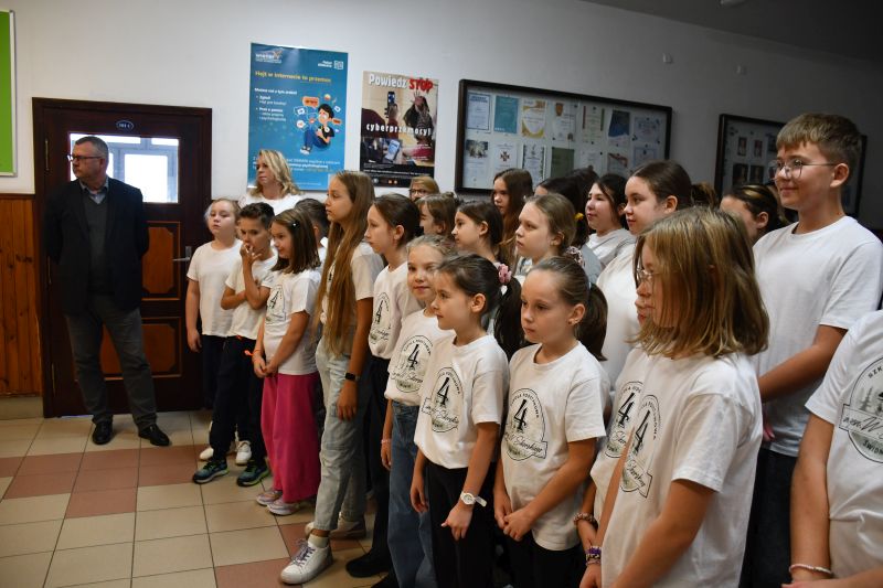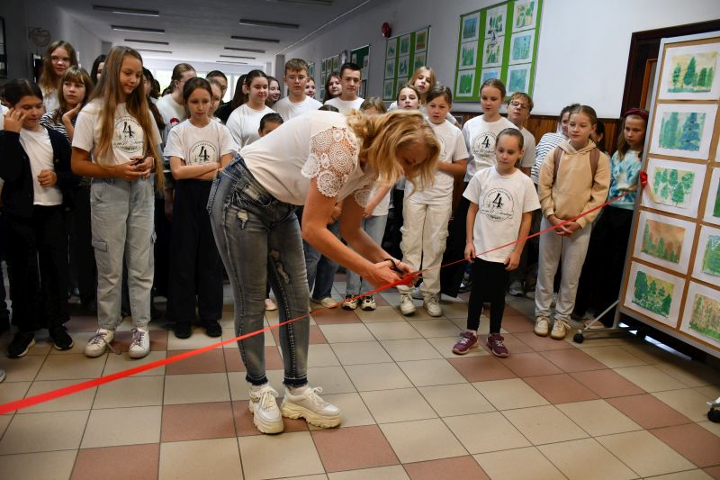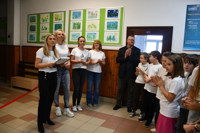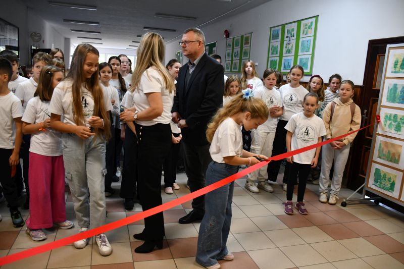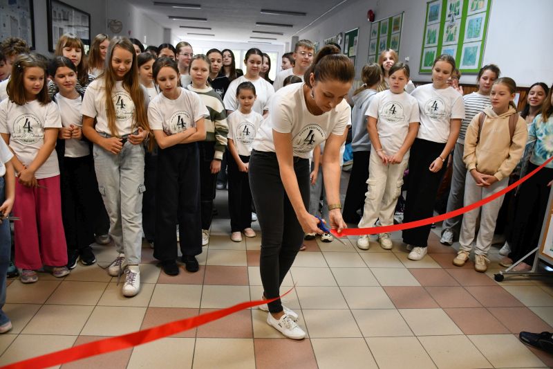 Dzisiaj odbyło się uroczyste odsłonięcie muralu i otwarcie towarzyszącej mu wystawy. Symbolicznego przecięcia wstęgi dokonali Mirosław Król, dyrektor ZSO nr 1, w skład którego wchodzi SP nr 4, a także ci, którzy pracowali przy powstaniu ściennej ozdoby.