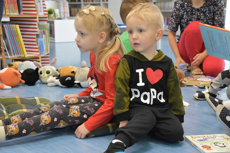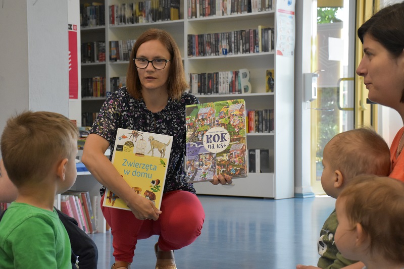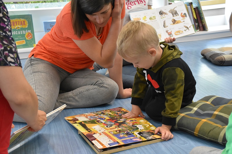 Było to drugie spotkanie w ramach projektu „Integracja kultur” (czytaj: Wesołe spotkanie w „Spynce”). Tym razem uczestnicy wybrali się poza swoją placówkę. Odwiedzili bowiem bibliotekę, gdzie czekały na nich gry i zabawy związane z książkami o zwierzętach.