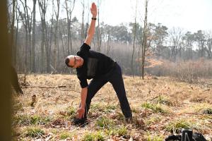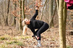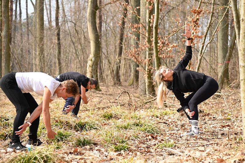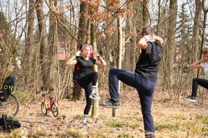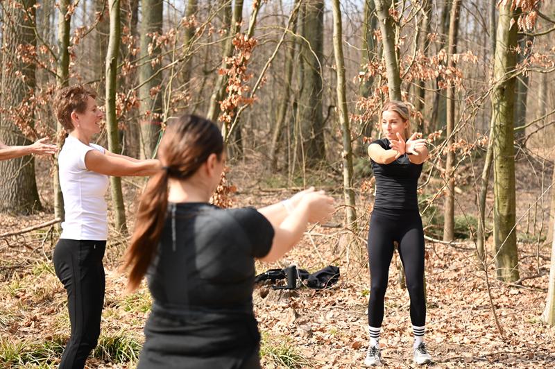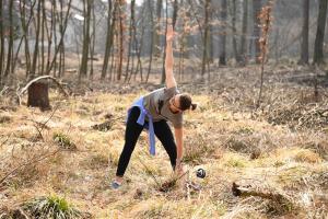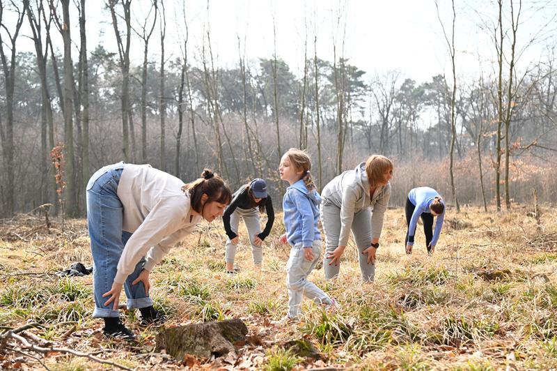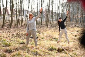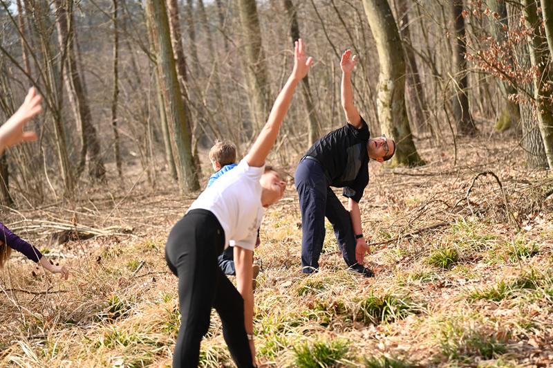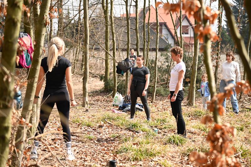 W tym samym czasie inni oddawali się bardziej subtelnym formom kontaktu z przyrodą. „Kąpiel leśna”, prowadzona przez Ewelinę Łastawiecką, pozwoliła na zwolnienie tempa i oddech w rytmie natury. Dla tych, którzy preferowali aktywność fizyczną, czekał leśny trening fitness z Karoliną Wiącek.