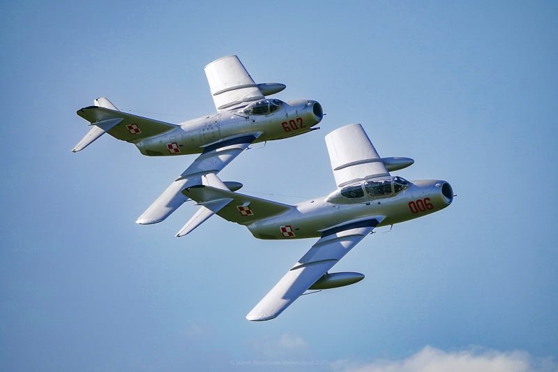 To kolejny raz, kiedy będziemy mieli okazję podziwiać te wspaniałe maszyny. Za ich sterami zasiądą Mateusz Strauma i Bartosz Maciejczyk. Lim-y, które zobaczymy nad Świdnikiem zostały wyprodukowane w PZL Mielec na bazie sowieckiego Mig-15. Obecnie to jedyne latające Migi-15 w Europie.