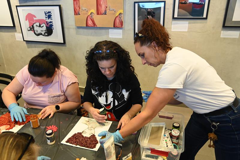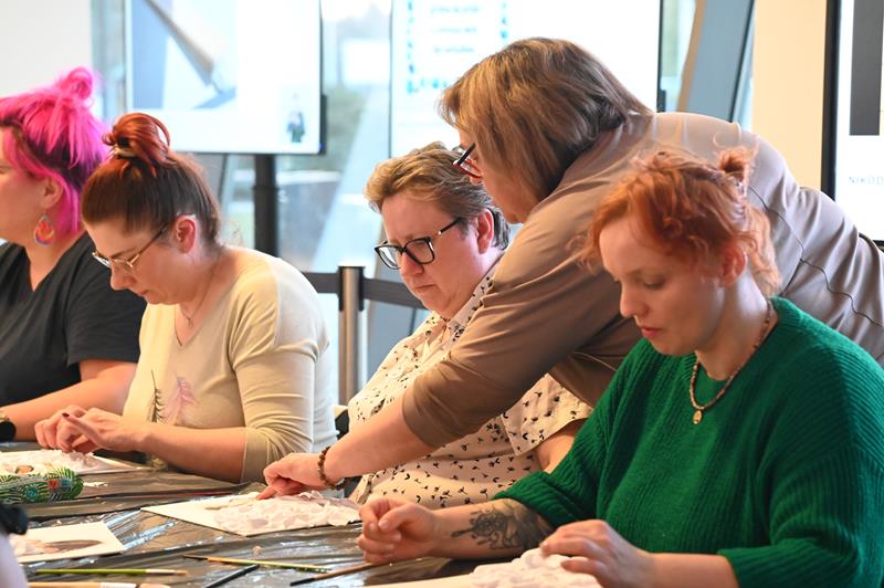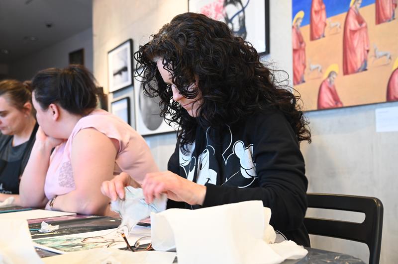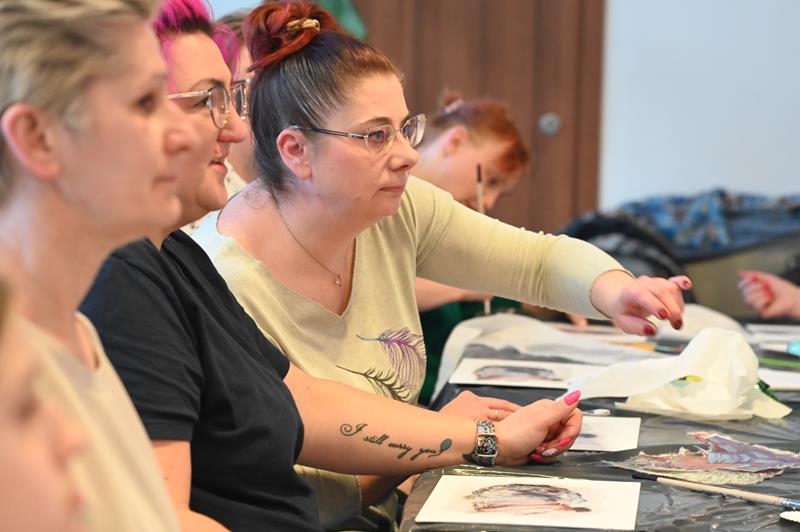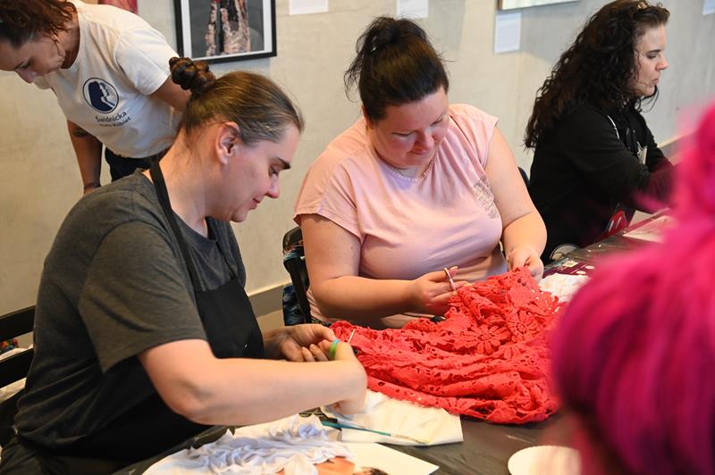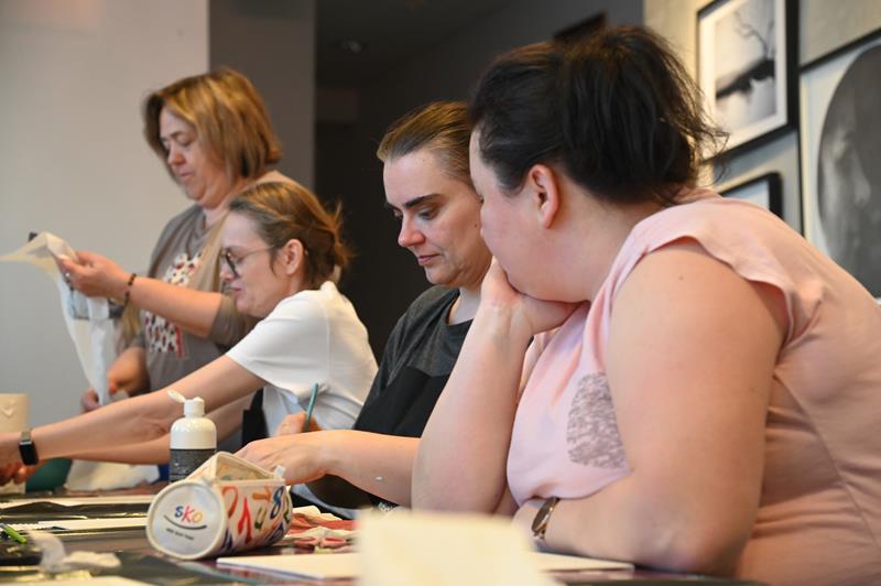 Podczas warsztatów uczestniczki krok po kroku poznawały tajniki tej metody. Od tworzenia kompozycji i przygotowanie materiałów po modelowanie tkaniny i nadawanie pracy ostatecznego charakteru za pomocą farb.