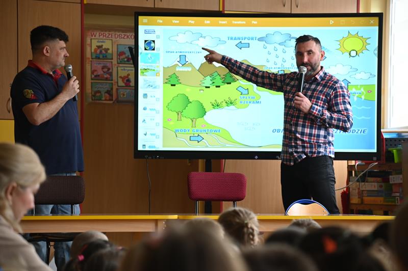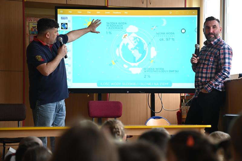 – Przyjechaliśmy dziś do Was, żeby opowiedzieć trochę o wodzie, ponieważ pracujemy w przedsiębiorstwie, które zajmuje się dostarczaniem jej do Waszych domów – wyjaśnił Tomasz Mazur, dyrektor Zakładu Wodociągów i Kanalizacji P. K. Pegimek.