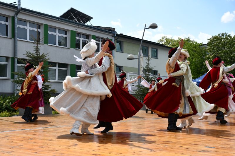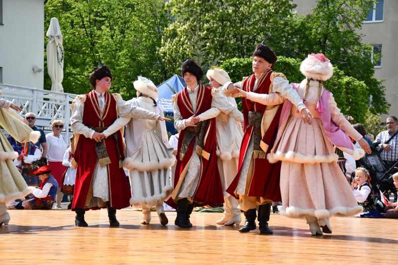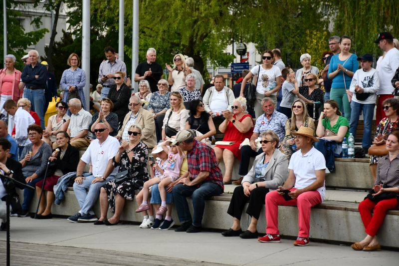 Na scenie pod chmurką zaprezentował się Zespół Tańca Ludowego „Leszczyniacy” pod kierunkiem Beaty i Lecha Leszczyńskich. Te występy zawsze wzbudzają ogromne emocje i aplauz publiczności. Nic dziwnego, bo umiejętności i profesjonalizm grup oraz niezwykle barwne stroje to zawsze gwarancja doskonałego tanecznego widowiska. Dziś było podwójnie wyjątkowo, ponieważ „Leszczyniacy” zaprezentowali nowe show pod hasłem „przedwojenna Warszawa”.