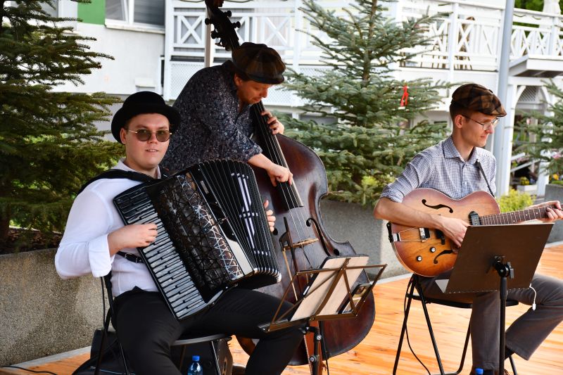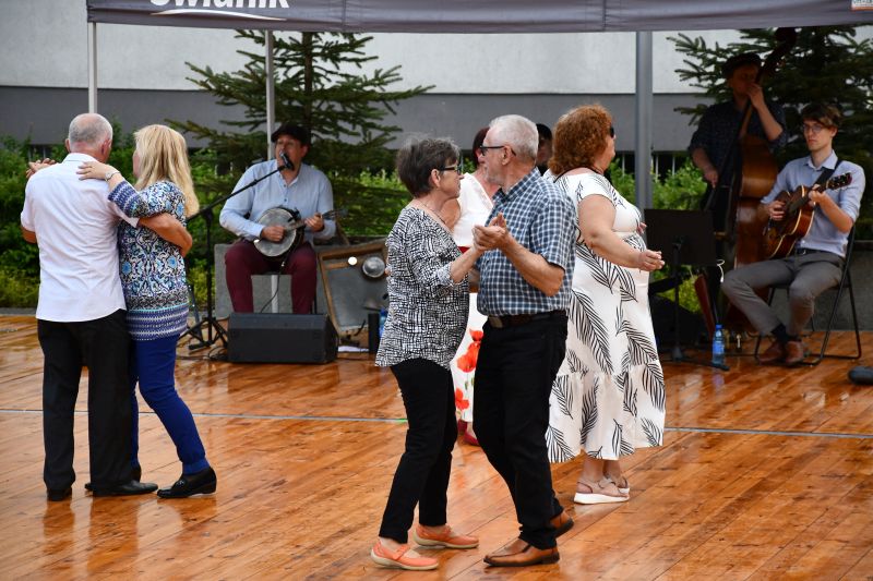 Na scenie pod chmurką zaprezentował się Zespół Tańca Ludowego „Leszczyniacy” pod kierunkiem Beaty i Lecha Leszczyńskich. Te występy zawsze wzbudzają ogromne emocje i aplauz publiczności. Nic dziwnego, bo umiejętności i profesjonalizm grup oraz niezwykle barwne stroje to zawsze gwarancja doskonałego tanecznego widowiska. Dziś było podwójnie wyjątkowo, ponieważ „Leszczyniacy” zaprezentowali nowe show pod hasłem „przedwojenna Warszawa”.