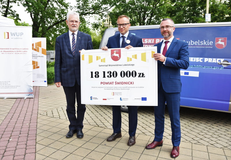 Na pomoc firmom z powiatu świdnickiego, które dotknął kryzys, przeznaczono ponad 21 mln zł rządowego wsparcia. Dzisiaj do Powiatowego Urzędu Pracy wpłynęły kolejne środki, ponad 18 mln zł. Symboliczny czek przekazali Artur Soboń, wiceminister aktywów państwowych oraz Andrzej Pruszkowski, dyrektor Wojewódzkiego Urzędu Pracy w Lublinie.