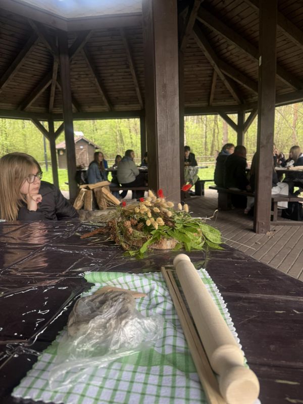 Uczniowie uczestniczą również w zajęciach przyrodniczych na ścieżce „Dąb Dominik” w Poleskim Parku Narodowym, połączonych z warsztatami rękodzieła „Szepty lasu” umiejscowionych w Poleskiej Chatce.