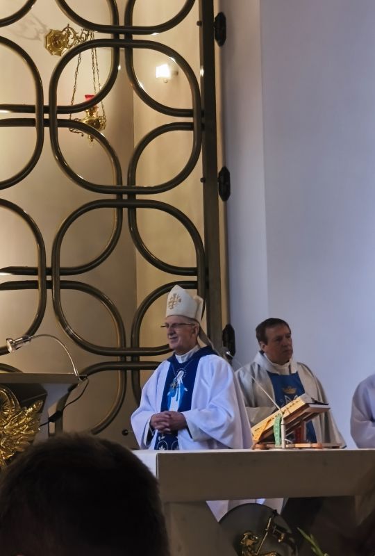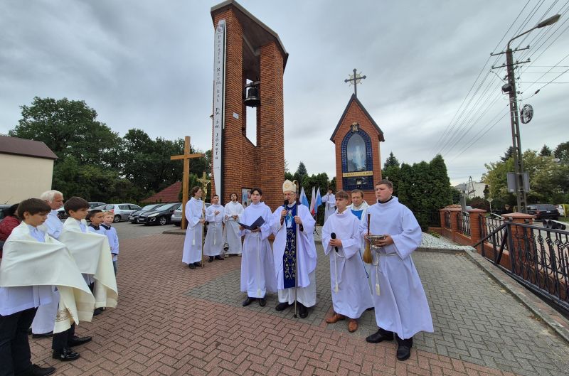 Ks. biskup Mieczysław Cisło po poświęceniu kapliczki odprawił mszę św. w intencji parafian i uczestników wspólnej modlitwy. Dziękował księżom Krzysztofowi Czerwińskiemu i Dawidowi Lebowie oraz wszystkim tym, którzy przyczynili się do powstania kapliczki, za piękny wkład w upamiętnienie objawień i podkreślanie obecności Maryi w naszym życiu.