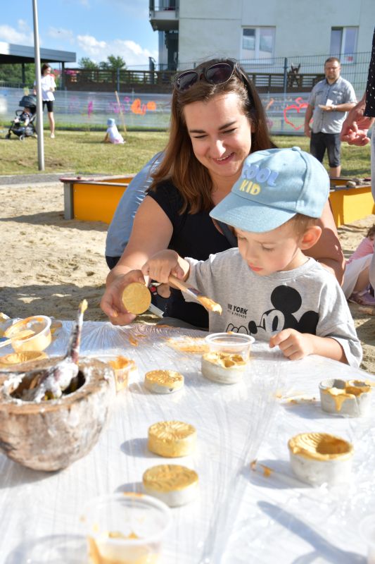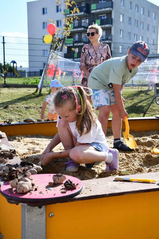 W to wyjątkowe, piątkowe popołudnie dzieciaki mogły nakarmić alpaki, poskakać na dmuchańcach, malować na kartonach lub folii, zrobić sobie kolorowe warkoczyki lub tatuaż, łowić plastikowe rybki lub poszukiwać skarbów. Chętnie uczestniczyły też w wykopaliskach, odkrywając ślady i jaja prehistorycznych zwierząt. Ogromnym zainteresowaniem cieszyły się przejażdżki na kucyku i koniu. Do konkursów sprawnościowych i zabawie z chustą Klanzy organizatorzy zaprosili najmłodszych oraz ich bliskich. Na głodnych i spragnionych czekały gorące kiełbaski, owocowy poczęstunek i napoje, a na starszych gości ognisko.