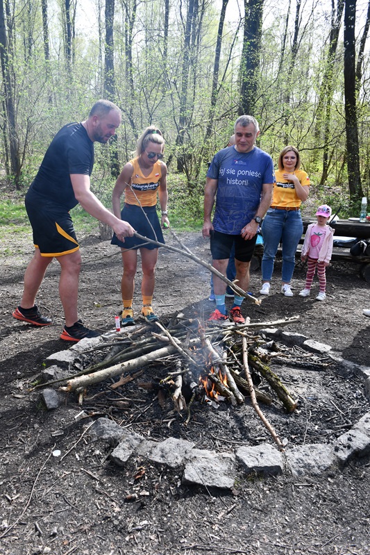 Przy ognisku spotkała się liczna grupa uczestników wydarzenia. Był to czas na posiłek i odpoczynek, ale też na rozmowy, żarty, opowieści o biegowych planach na najbliższe dni. Najmłodsi, mimo wysiłku fizycznego nadal pełni energii, oddali się nawet tańcom.