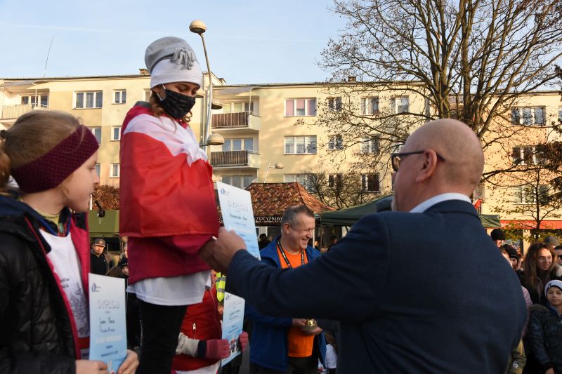 Sportowe wydarzenie zwieńczyło wręczenie statuetek i dyplomów, a także losowanie nagród wśród wszystkich uczestników biegów. Nie zabrakło też części artystycznej. Na patriotyczne śpiewanie zaprosił uczestników Chór Św. Kingi.