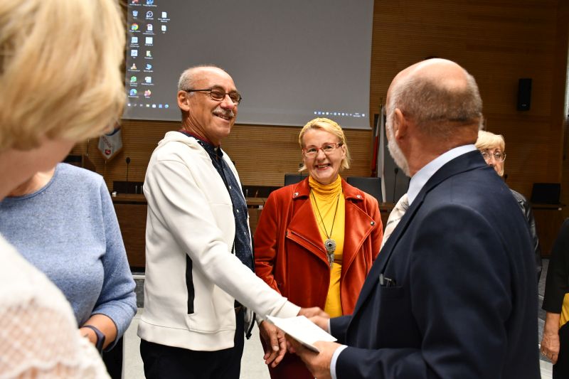Wszystkim, którzy uczęszczają na zajęcia UTW, powodzenia, optymizmu, owocnego roku akademickiego i satysfakcji z nauki życzyli starosta Łukasz Reszka oraz Jan Pyszniak, przewodniczący Świdnickiej Rady Seniorów. Głos zabrał również Andrzej Krygier, prezes honorowy świdnickiego UTW: – W 1973 roku, w Tuluzie, profesor Pierre Vellas doszedł do wniosku, że osoby w wieku dojrzałym również zasługują na zainteresowanie i otworzył pierwszy Uniwersytet Trzeciego Wieku. Jako student lubelskiego UTW zorganizowałem wyjazd do Tuluzy, by podziękować profesorowi. Na czerpanym papierze znalazło się 800 podpisów studentów z Lublina. Profesor był bardzo wzruszony. Niestety, zmarł dwa tygodnie po spotkaniu. Jego syn przejął działalność i bardzo zaprzyjaźnił się z Polską. To tak dla przypomnienia. Chciałem też pogratulować studentom nowego prezesa, bo Jan Rosiak jest moim fantastycznym następcą. Rzadko się zdarza, że człowiek znajdzie znacznie lepszego od siebie.