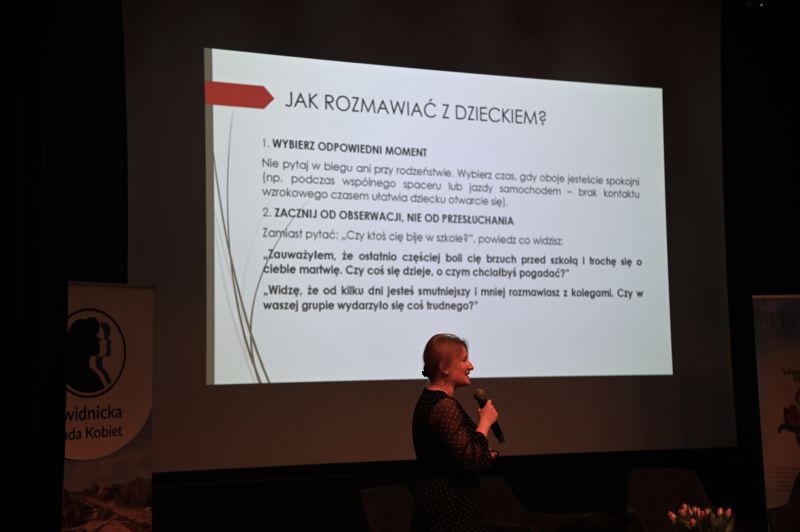 – Bardzo się cieszę, że jesteśmy tutaj razem. Dzisiaj temat trudny, ale niezwykle ważny, dlatego dziękuję naszym ekspertkom i prelegentkom, że o nim opowiedzą – powitała zgromadzonych Agata Nowacka ze Świdnickiej Rady Kobiet.