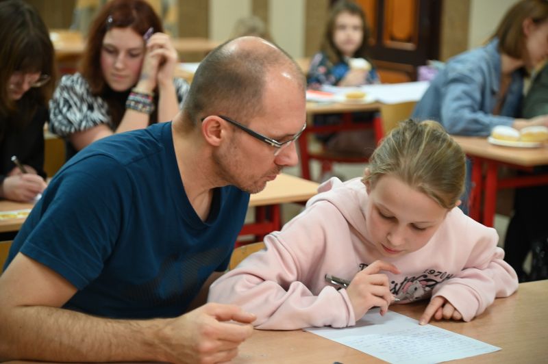 Celem wydarzenia, które już po raz szósty zorganizowała Magdalena Hajkowska, nauczycielka języka polskiego, było promowanie poprawnej polszczyzny, integracja rodzin oraz rozwijanie językowych pasji. Uczestników powitał Hubert Wiktorowicz, wicedyrektor Zespołu Szkół Ogólnokształcących nr 1, w skład którego wchodzi „Czwórka”: – Cieszymy się, że jesteście Państwo gotowi stawić czoło wyzwaniu, jakie zostało dla Was przygotowane. Jest to sposobność do sprawdzenia znajomości zasad ortografii, ale przede wszystkim piękna okazja do tego, aby wspólnie, międzypokoleniowo spędzić czas. Mamy nadzieję, że zmagania upłynął w miłej atmosferze. Gorąco dziękuję pani Magdalenie, pomysłodawczyni dyktanda, panu Jakubowie Płachcie, który odegra dzisiaj ważną rolę, oraz Wam wszystkim. Życzę powodzenia!