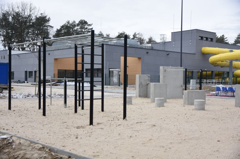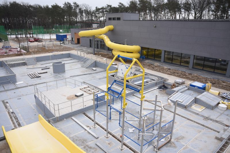 Zgodnie z umową podpisaną w sierpniu 2018 roku, firma Warbud ma czas do końca lutego na zakończenie wszystkich prac budowlanych. Jak tłumaczą jej przedstawiciele, inwestycja jest na finiszu. Trwają ostatnie prace przy wykańczaniu wnętrz oraz montowaniu ostatnich atrakcji wodnych. Na zewnętrznej siłowni stanęły już niemal wszystkie urządzenia, gotowy jest również plac sprawnościowy, a także kompleks boisk. Tuż przed świętami rozpoczęło się uruchamianie urządzeń zamontowanych w kompleksie i sprawdzanie ich działania.