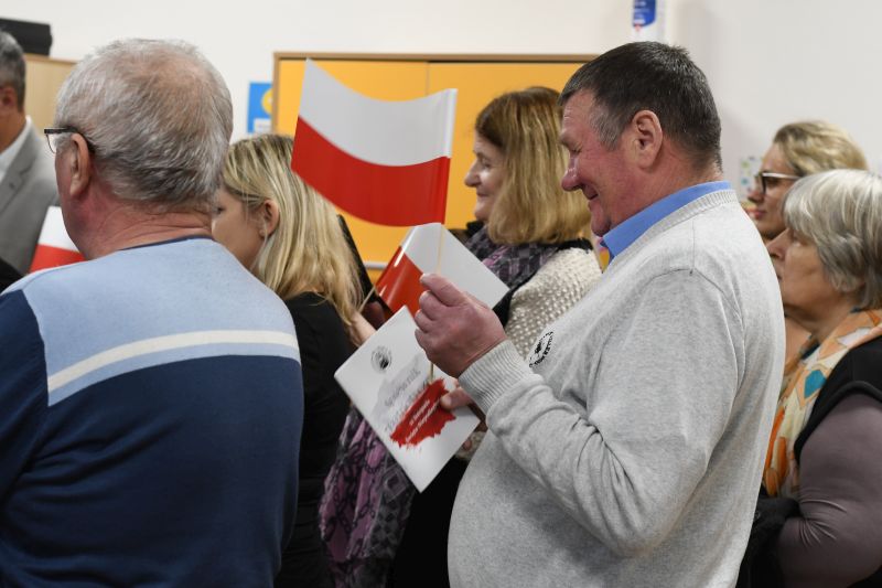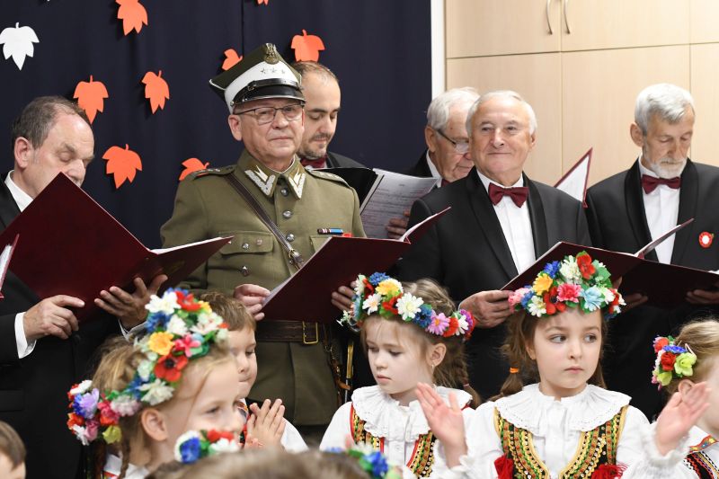 Na scenie nie zabrakło także Chóru Arion. Chórzyści wspólnie z dziećmi zaśpiewali pieśni patriotyczne. Na koniec zaprosili do świętowania niepodległości rodziców i dziadków. Wieczornicę zwieńczyło wspólne zaśpiewanie hymnu państwowego.